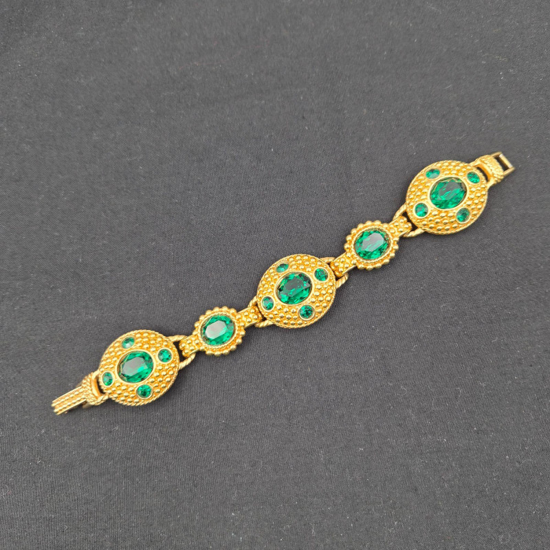 Lot # 17 - Amazing Swarovski Green Crystal Gold Tone Bracelet - Swan Mark Starting Bid: $ 10.00 Bids: This sale will end in: |