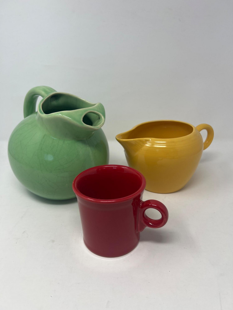 Lot # 93 - Hall Green Pitcher with Fiesta Yellow Pitcher & Red Mug Starting Bid: $ 10.00 Bids: Bidding starts in: |
