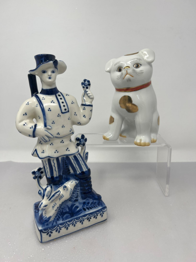 Lot # 20 - Kutani Puppy & Gzhel Soviet Hunter Ceramic Figurines Starting Bid: $ 10.00 Bids: Bidding starts in: |