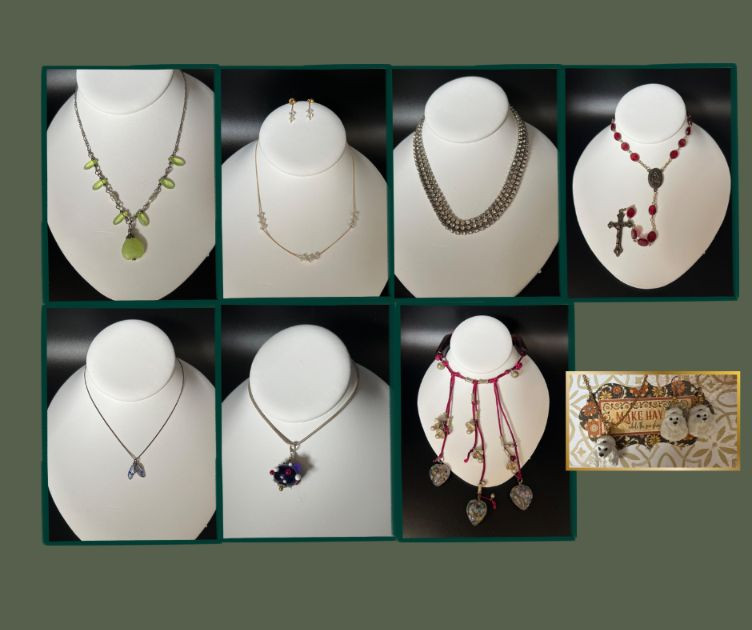 Lot # 33 - Variety of Vintage Costume, Novelty and Sterling Necklaces & Rosary Starting Bid: $ 5.00 Bids: Bidding starts in: |
