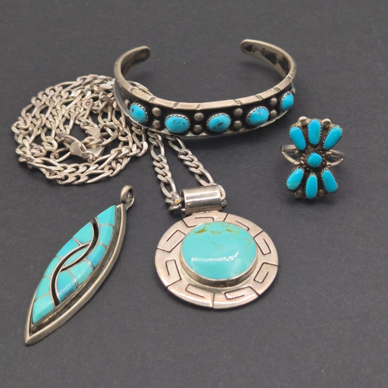 Lot # 74 - Southwest Artisan Turquoise Sterling Silver Jewelry Mix Starting Bid: $ 5.00 Bids: Bidding starts in: |