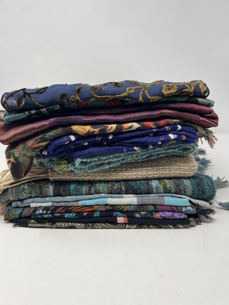 Lot # 52 - Mixed Lot of Scarves, Shawls & Table Coverings — Various Materials Starting Bid: $ 5.00 Bids: Bidding starts in: |