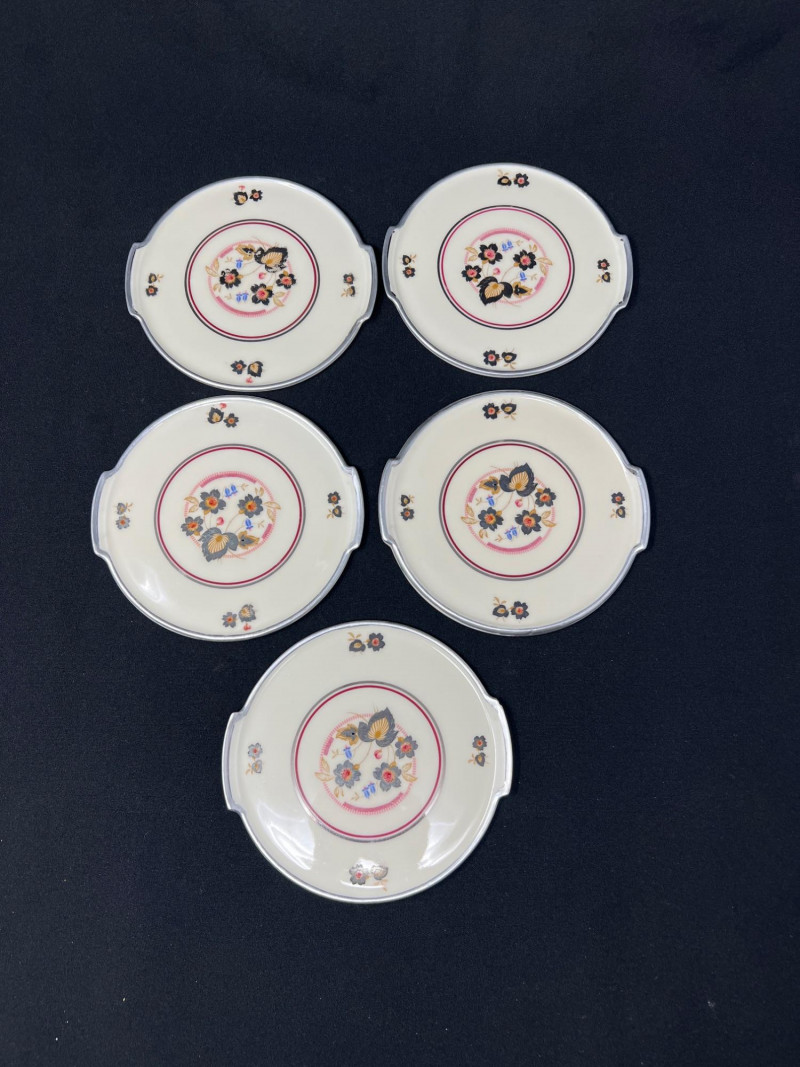 Lot # 72 - Elite‑Ivory A.W. Czecho‑Slovakia Handled Floral Plates — Set of Five Starting Bid: $ 5.00 Bids: Bidding starts in: |