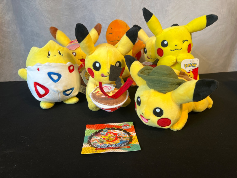 Lot # 95 - Pokémon 9" Plush Toys –Pikachu Variants, Togepi & Charmander Starting Bid: $ 10.00 Bids: Bidding starts in: |