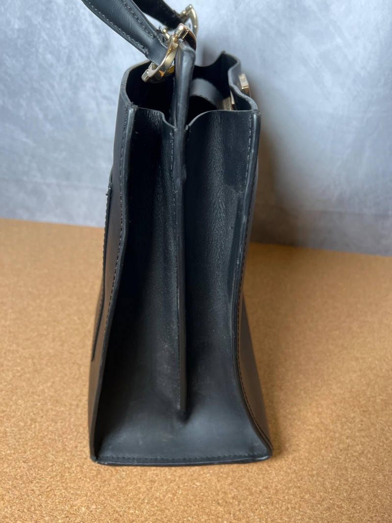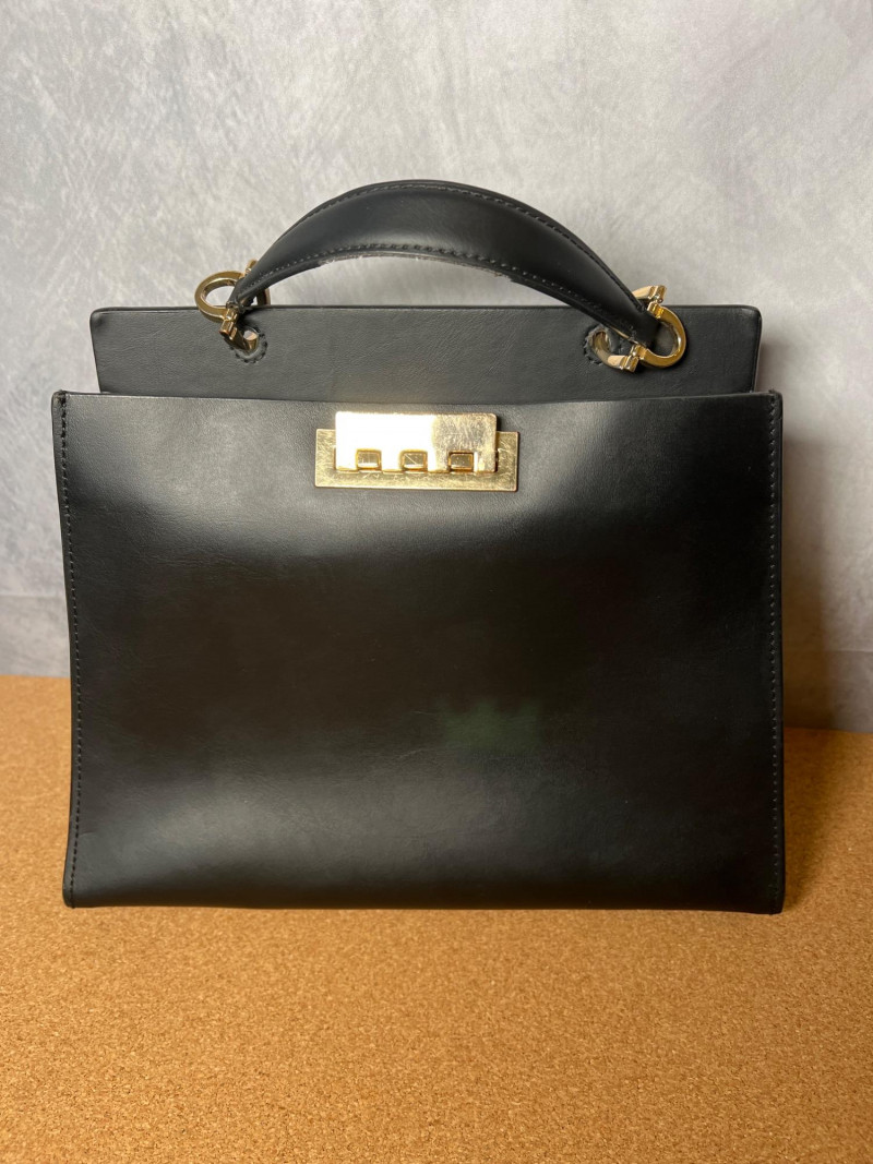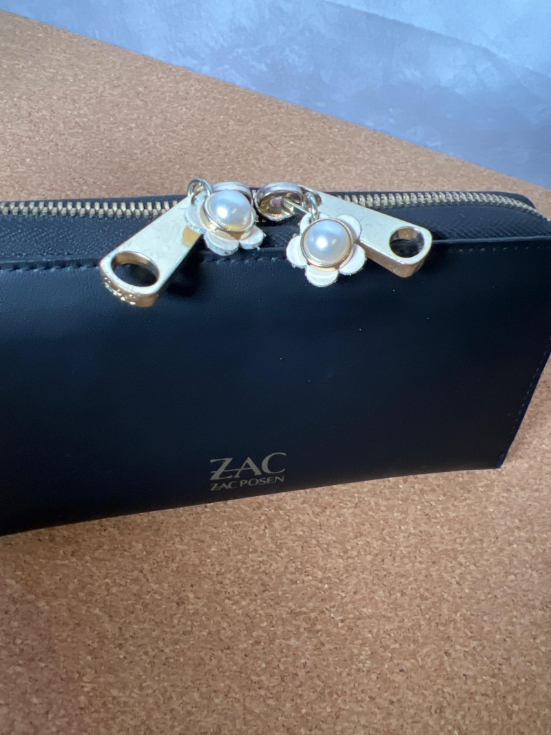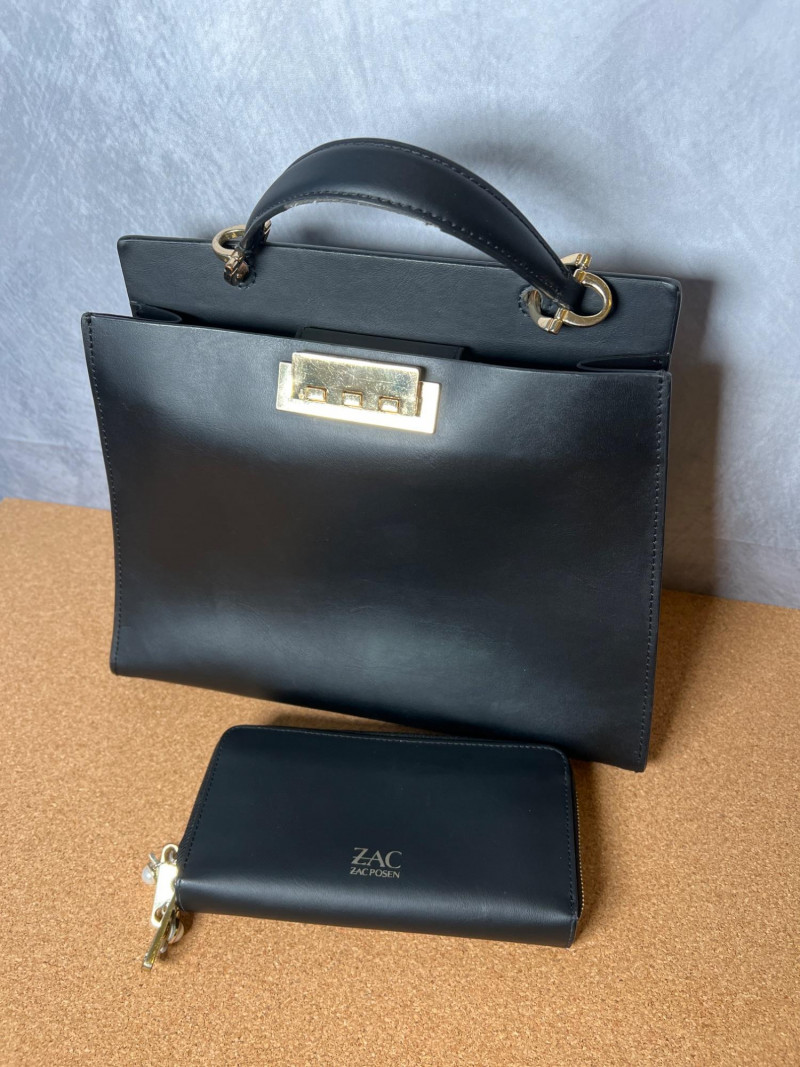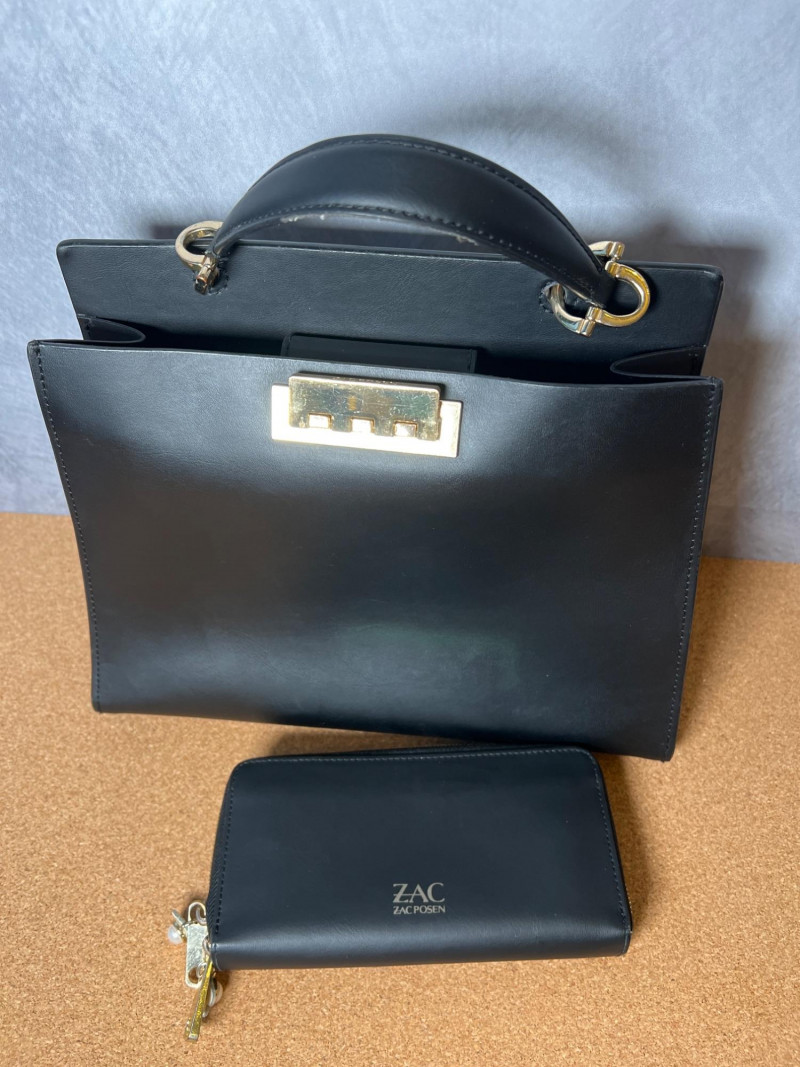 A structured pairing from Zac Posen’s Earthette line, featuring a satchel and matching wallet in a sleek, architectural silhouette. This duo blends modern elegance with signature edge—ideal for collectors of designer accessories or those curating a polished wardrobe. Wallet - 8" w x 4" h x 1.5" d