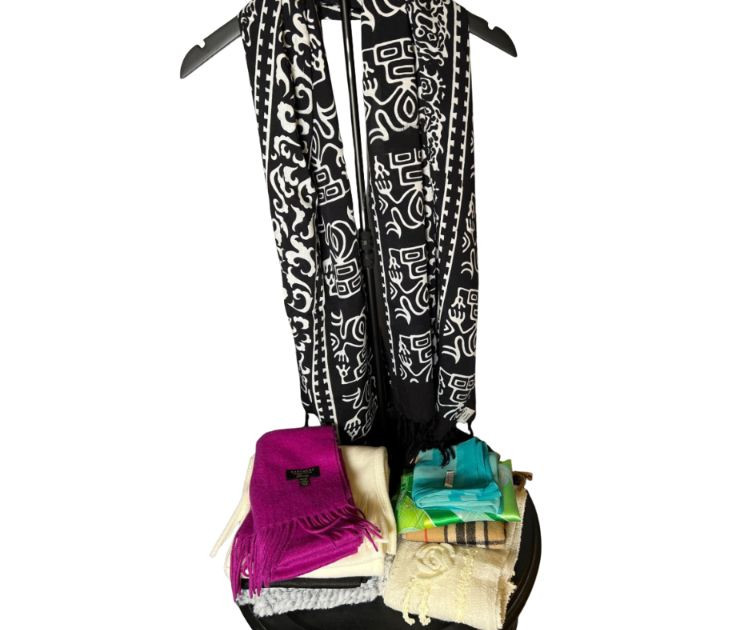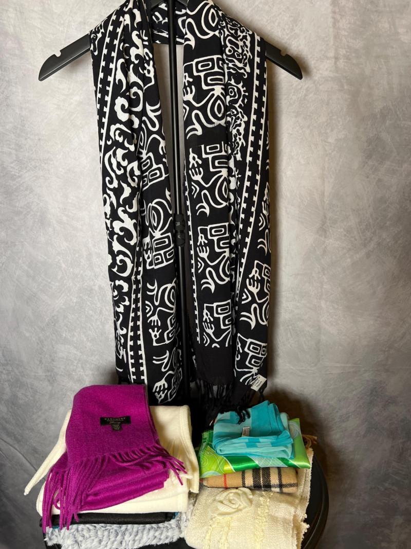 A curated assortment of textures, patterns, and eras — perfect for layering, gifting, or resale. This mixed lot includes classic wool, soft fleece, elegant silk‑style pieces, and a Nordstrom lambswool scarf for added value. A versatile bundle with a mix of materials and styles — ideal for winter wardrobes, vintage lovers, or boutique resellers.