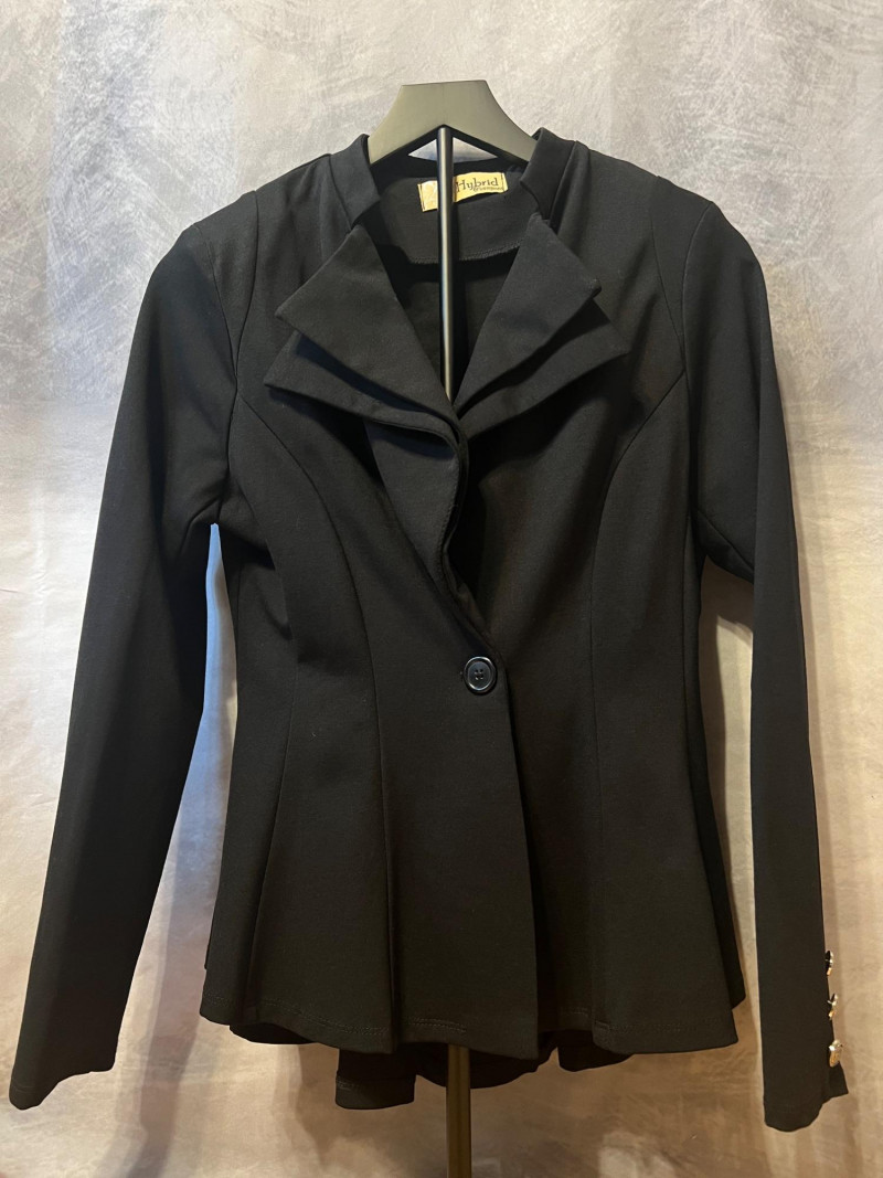 A tailored, single‑button blazer with a clean, modern cut. Notched lapels, structured shoulders, and a smooth drape make it ideal for office wear or elevated casual outfits. Hybrid & Company – Women’s Size Large:
