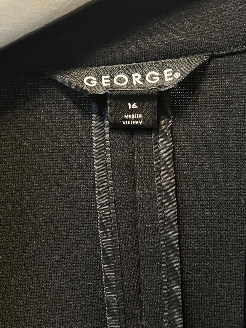 A classic pair of vintage black blazers, each offering a different silhouette and styling for versatile wear. George – Women’s Size 16: