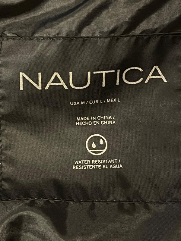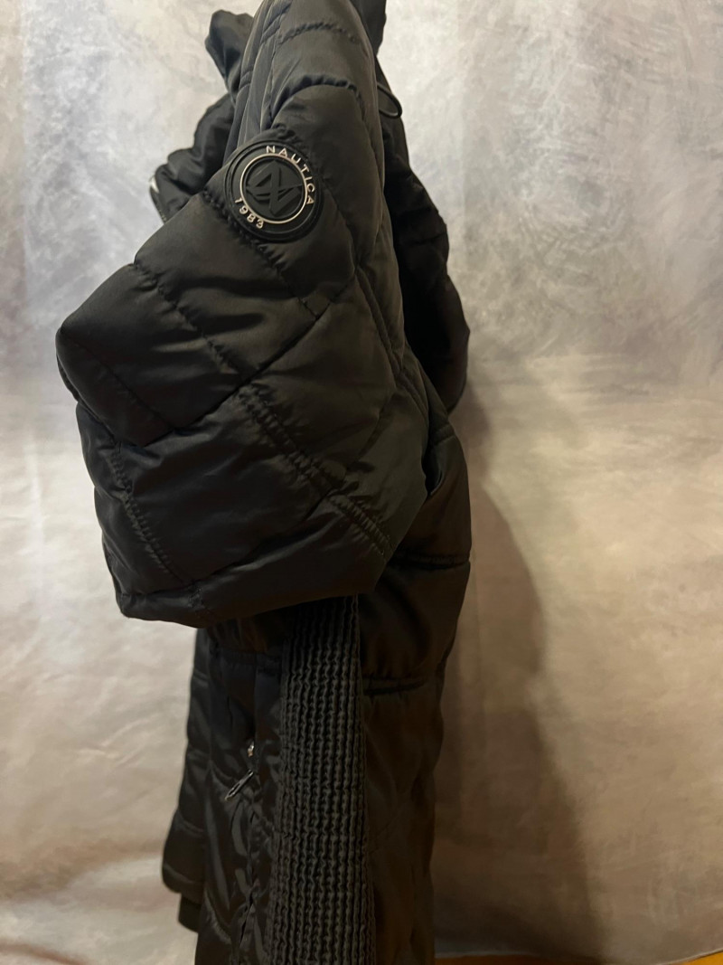 Timeless cold‑weather staple from Nautica, this black quilted puffer coat delivers lightweight warmth with a clean, athletic silhouette. Designed with an attached hood, full‑length zipper, and a signature chest patch reading “Nautica 1983,” it blends everyday function with the brand’s coastal heritage. Ideal for layering and versatile enough for daily wear. Size: Medium Black quilted puffer construction Full front zipper closure Attached hood Nautica “1983” patch detail Lightweight insulated design Two front zipped pocketsFeatures