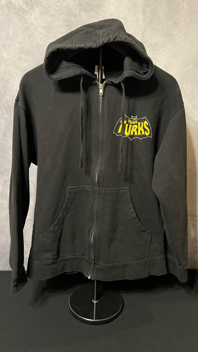 A bold, collectible zip‑front hoodie featuring The Young Turks graphic at front and across back, printed in a striking yellow emblem design. Made by Independent Trading Company, this sweatshirt offers a classic streetwear silhouette with a full front zipper, drawstring hood, and dual front pockets. A great piece for fans of the show, pop‑culture collectors, or anyone who appreciates graphic hoodies with personality. Full‑zip black hooded sweatshirt “The Young Turks” chest graphic in yellow Made by Independent Trading Company Front pockets and drawstring hood Soft fleece interior Unisex streetwear style