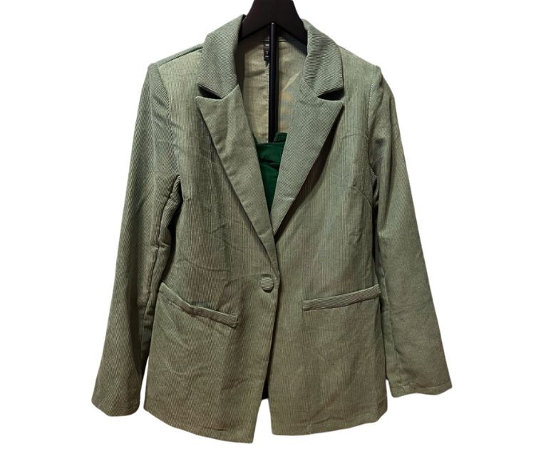 A stylish two‑piece set from SHEIN featuring a soft green corduroy jacket (Size Medium) paired with a coordinating emerald‑green stretch cami. The jacket offers a relaxed, easy‑layering fit with a textured corduroy finish, while the cami adds a smooth, fitted contrast — perfect for casual wear, layering, or creating a pop of color. A versatile pairing that works beautifully together or as separates — great for everyday outfits, seasonal layering, or adding texture and color to your wardrobe.