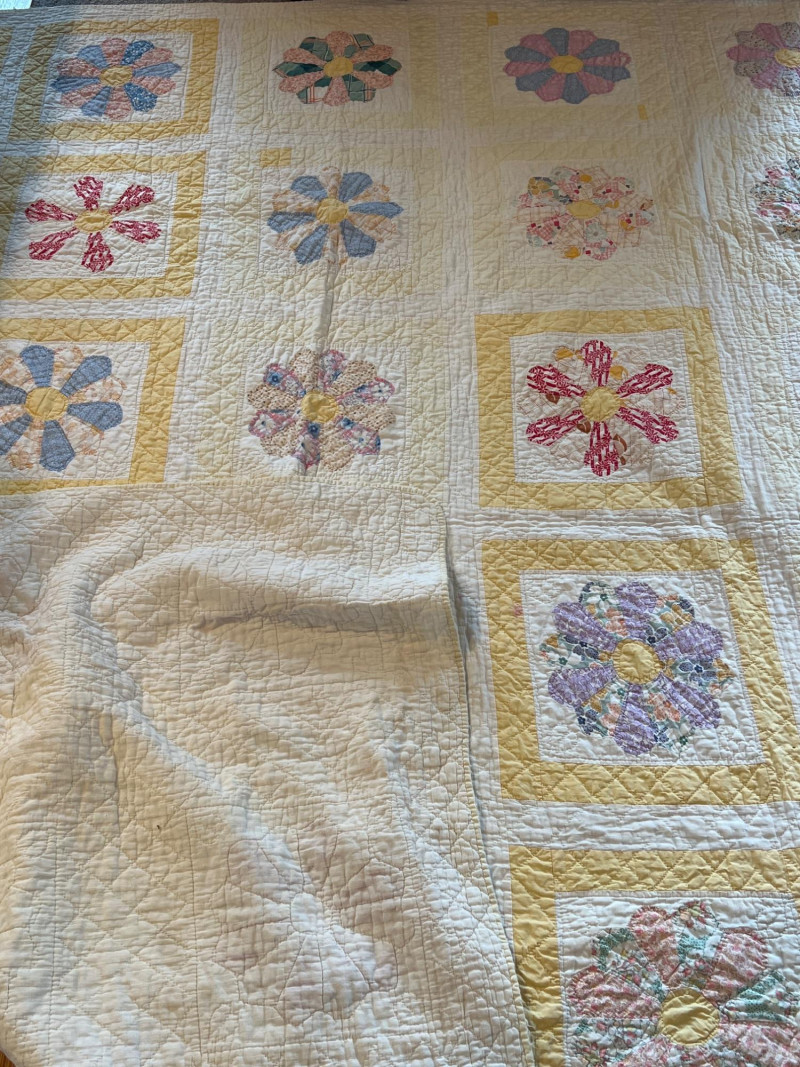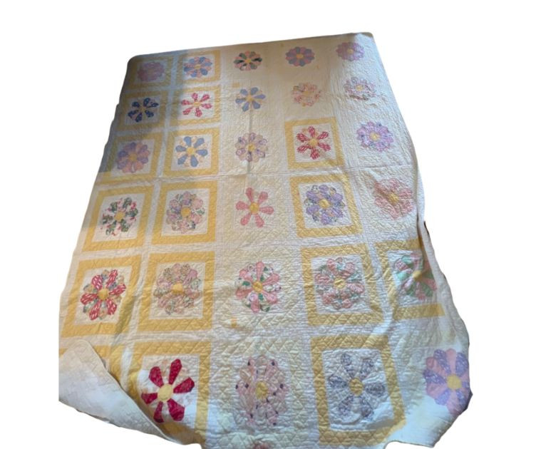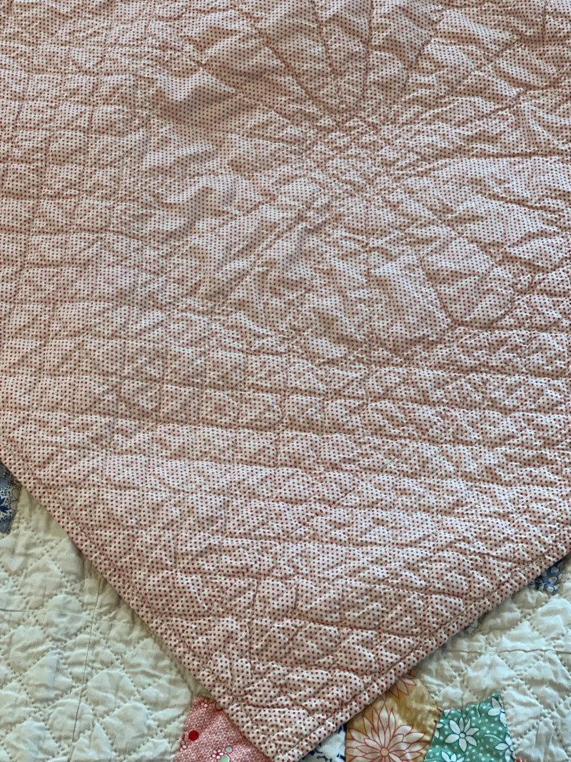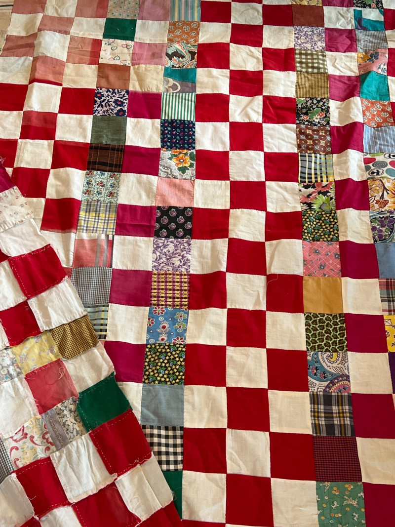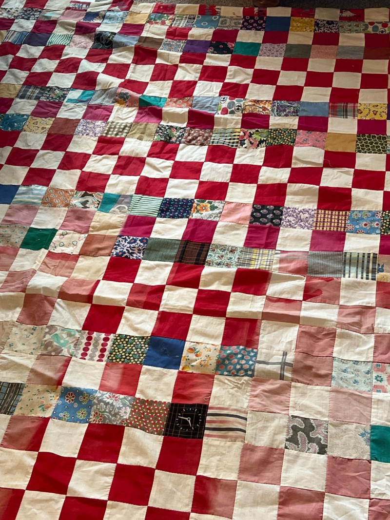 A wonderful lot for collectors, quilters, or anyone who appreciates vintage hand‑sewn craftsmanship. See photos for individual patterns. Yellow - 92" x 75" Pink - 82" x 68" Diagonal Patchwork - 78" x 62" (no back) Red Square Patchwork - 87.5 x 73.5 (no back)