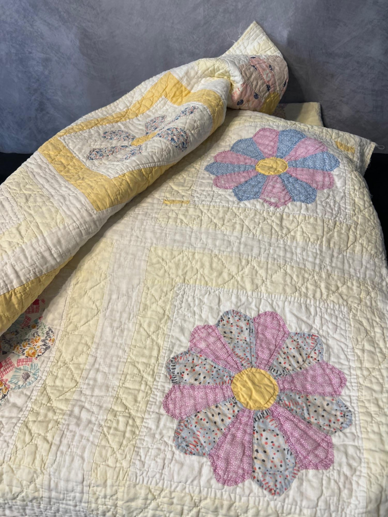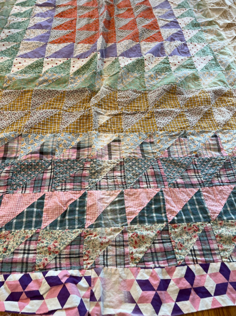 Lot # 78 - Hand‑Sewn Vintage Quilts — Two Completed & Two Unbacked Patchwork Tops