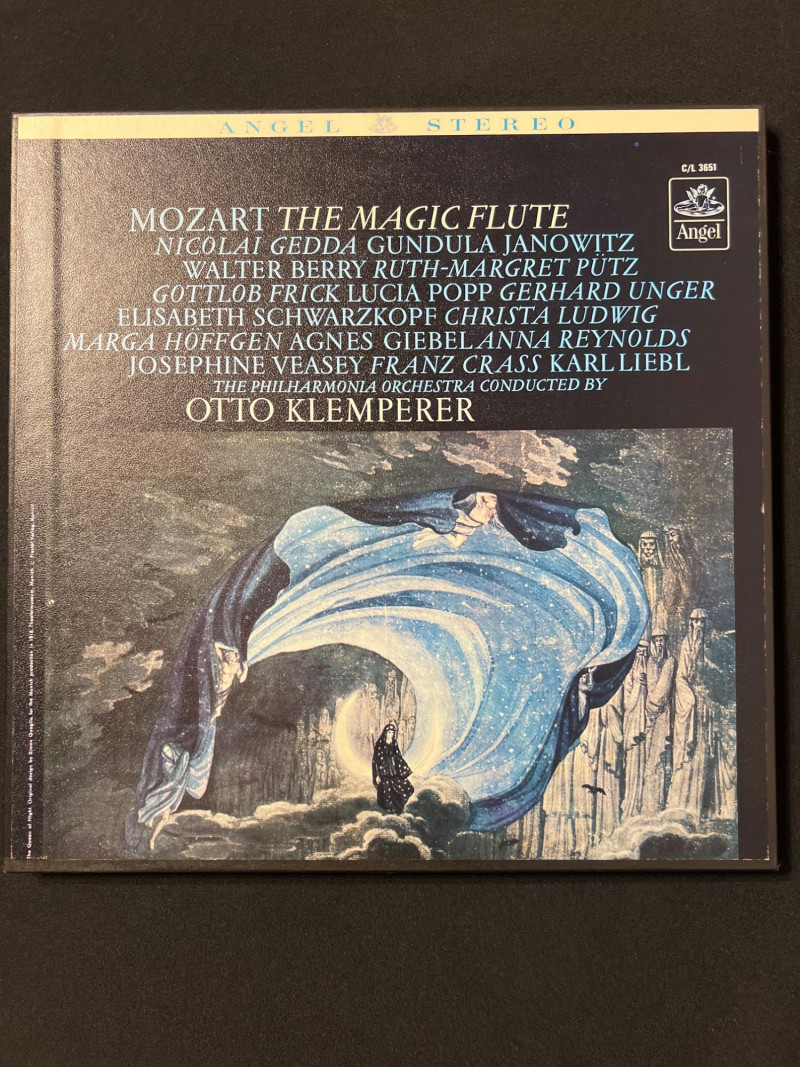 A distinguished opera recording of Mozart’s The Magic Flute, performed by an exceptional cast including Nicolai Gedda, Gundula Janowitz, Walter Berry, Ruth‑Margret Pütz, Gottlob Frick, Lucia Popp, and Elisabeth Schwarzkopf. Conducted by Otto Klemperer with the Philharmonia Orchestra, this Angel Stereo release is widely regarded for its clarity, dramatic depth, and historically significant performances. A richly cast production that remains a favorite among collectors of classical vinyl and admirers of Mozart’s most imaginative and beloved operas. Three record set and includes inner booklet.