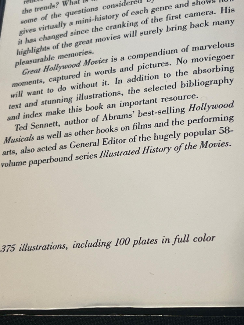 A richly illustrated survey of classic Hollywood cinema, featuring 375 photographs and genre-spanning commentary from film historian Ted Sennett. This oversized 304‑page volume highlights landmark films from the silent era through the mid‑20th century, offering both visual appeal and historical insight. A must-have reference for film lovers and collectors.