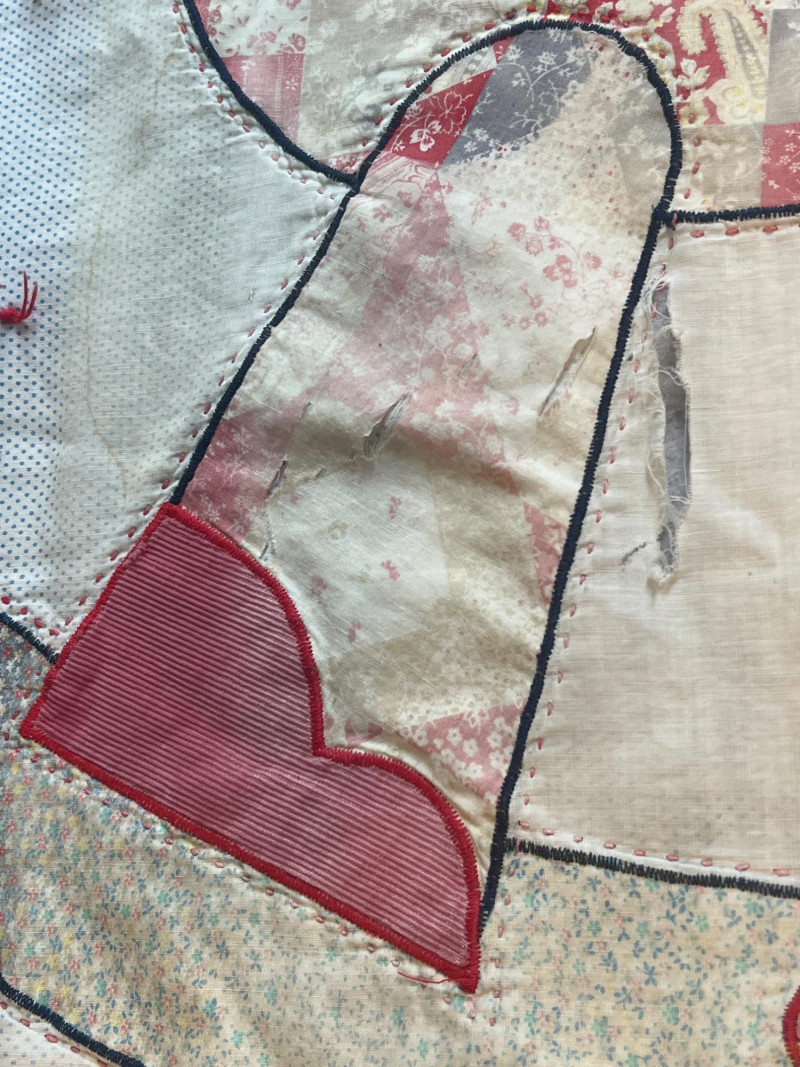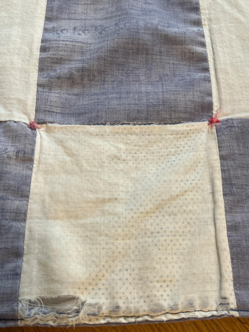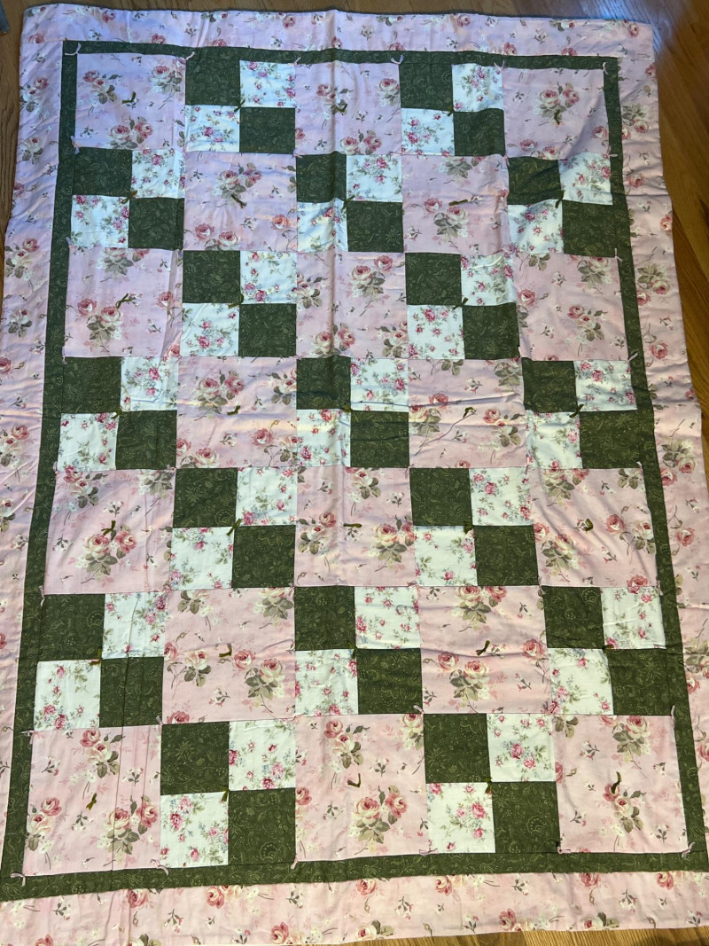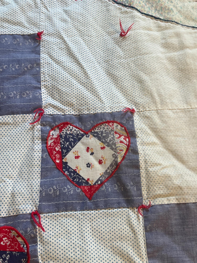 Pair of handmade quilts featuring traditional pieced construction and vibrant fabric combinations. Each quilt shows the unique character of artisan workmanship, with visible stitching, coordinated patterns, and thoughtful color placement. A warm and inviting duo suitable for display, layering, or everyday use, offering the charm and individuality found only in handmade textile work. Rocking horse quilt needs repair on a few blocks along edge and a few center squares.