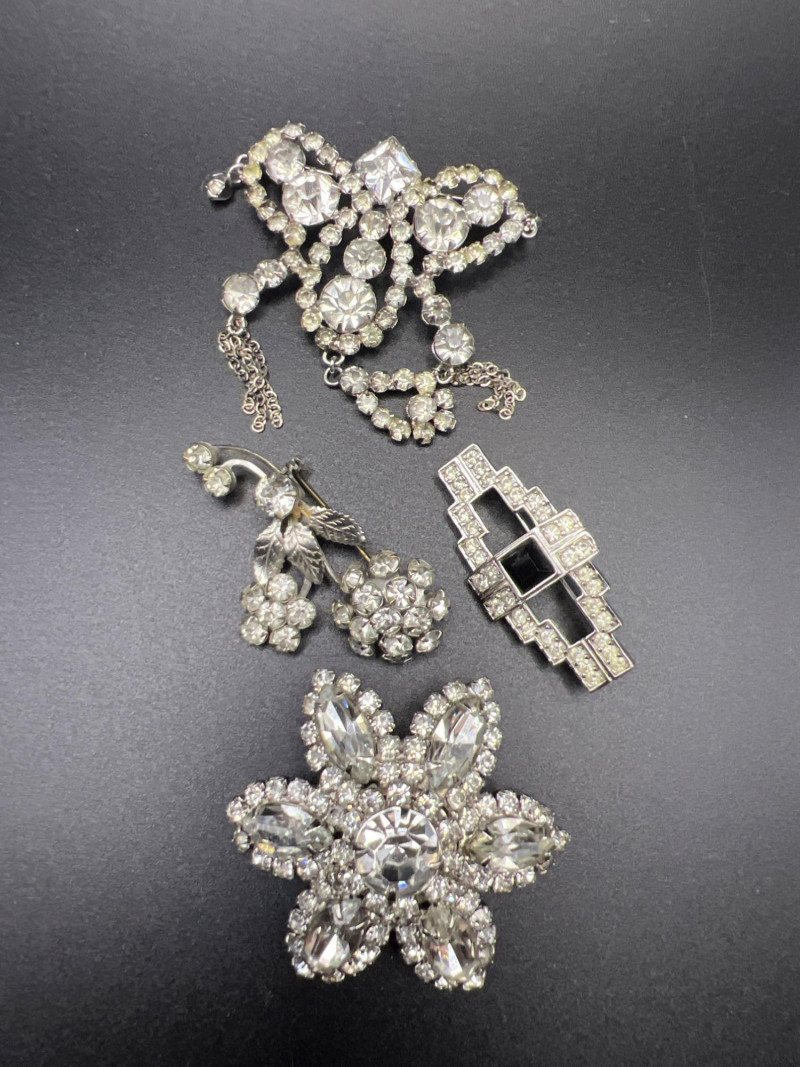 Lot # 110 - Vintage Rhinestone Jewelry - Brooches, Necklaces, Bracelets, Earrings