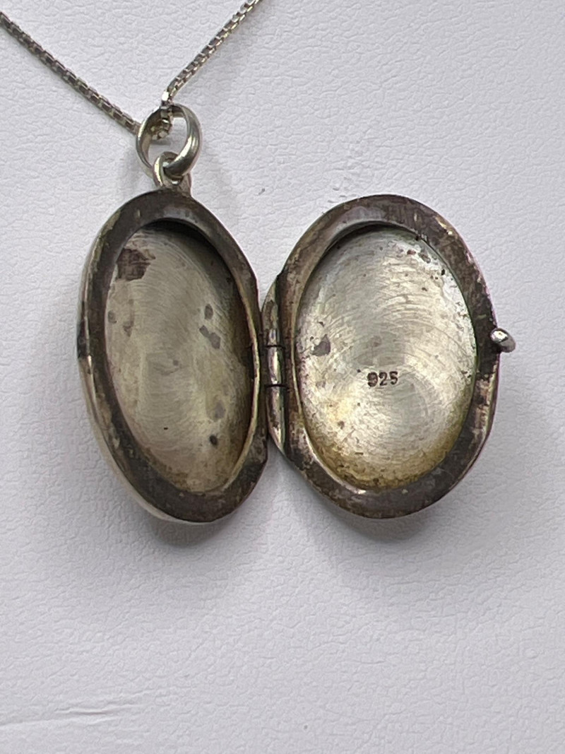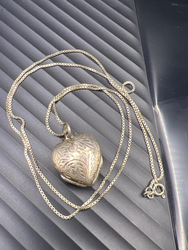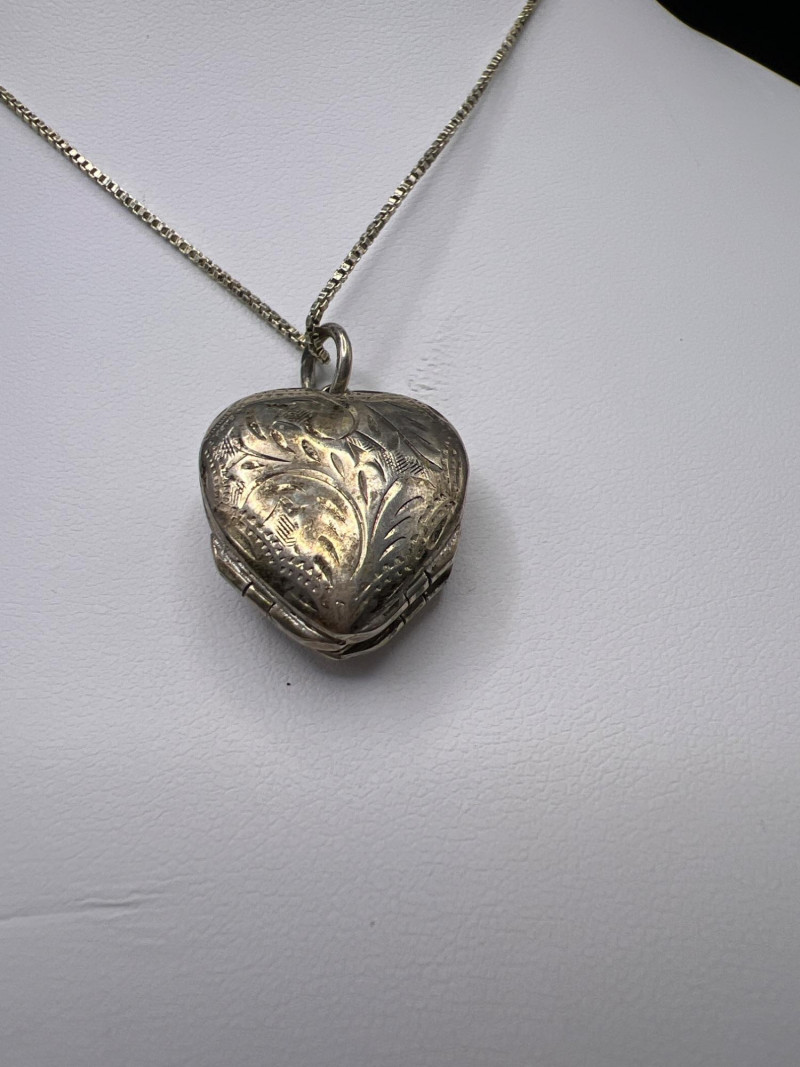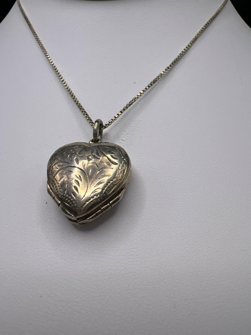 Assortment of fashion and sterling silver jewelry featuring an elegant mix of pendants, heart‑themed pieces, vintage‑style lockets, and multiple 925 chains. Includes engraved and filigree designs, gemstone‑accented pendants, and romantic motifs in both sterling and fashion metals. A versatile grouping ideal for collectors, resellers, or anyone who loves expressive mixed‑metal jewelry. Chains - 18” and 22”