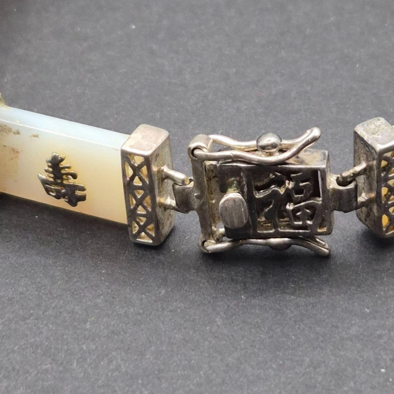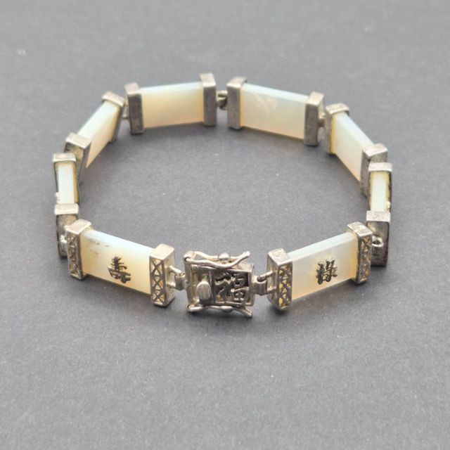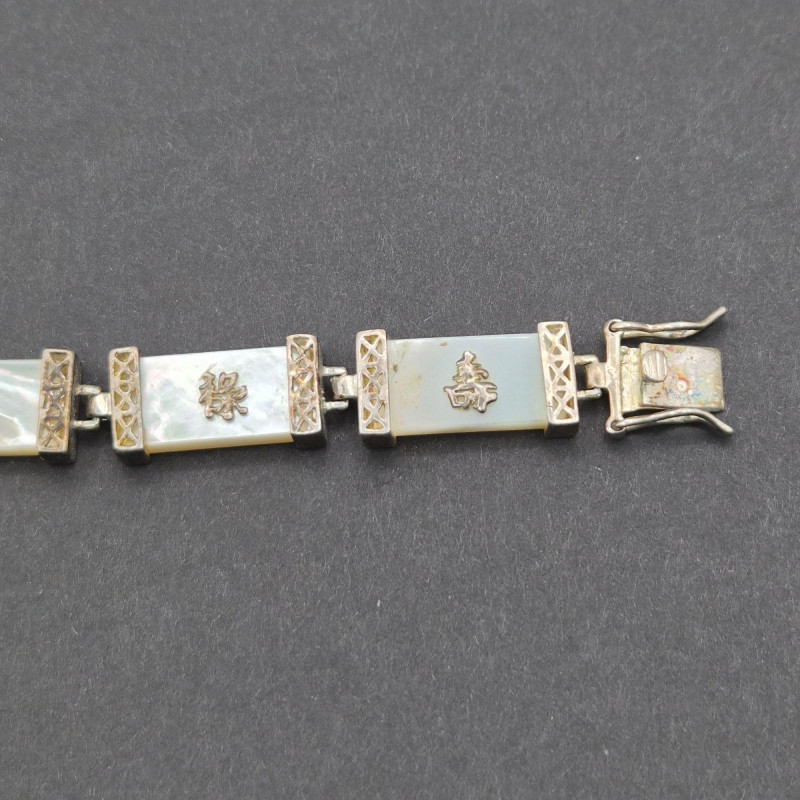 Lot # 115 - Sterling & Mother‑of‑Pearl Asian Motif Link Bracelet