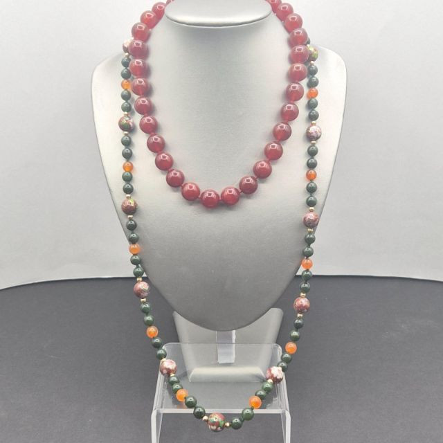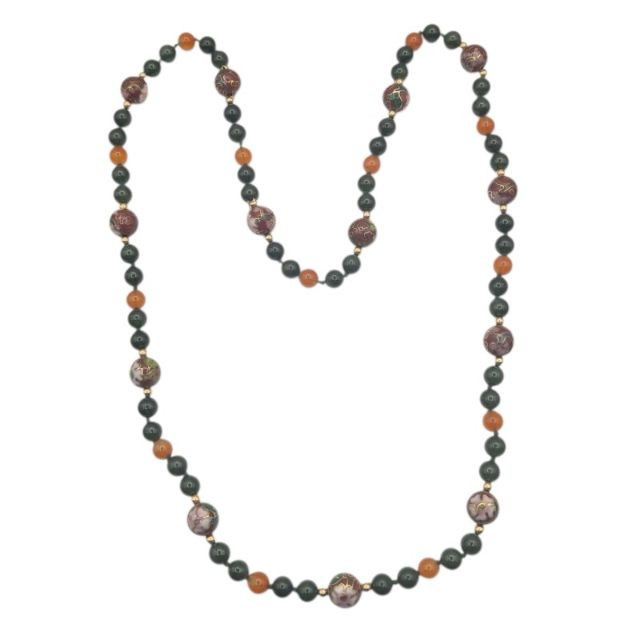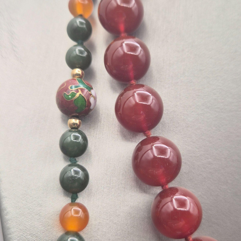Lot # 132 - Red Agate, Carnelian, Jade & Cloisonné Beaded Necklaces