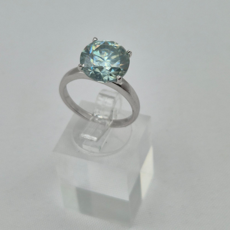 Lot # 5 - Celestial Sparkle: Icy Blue Moissanite Ring in Sterling Elegance