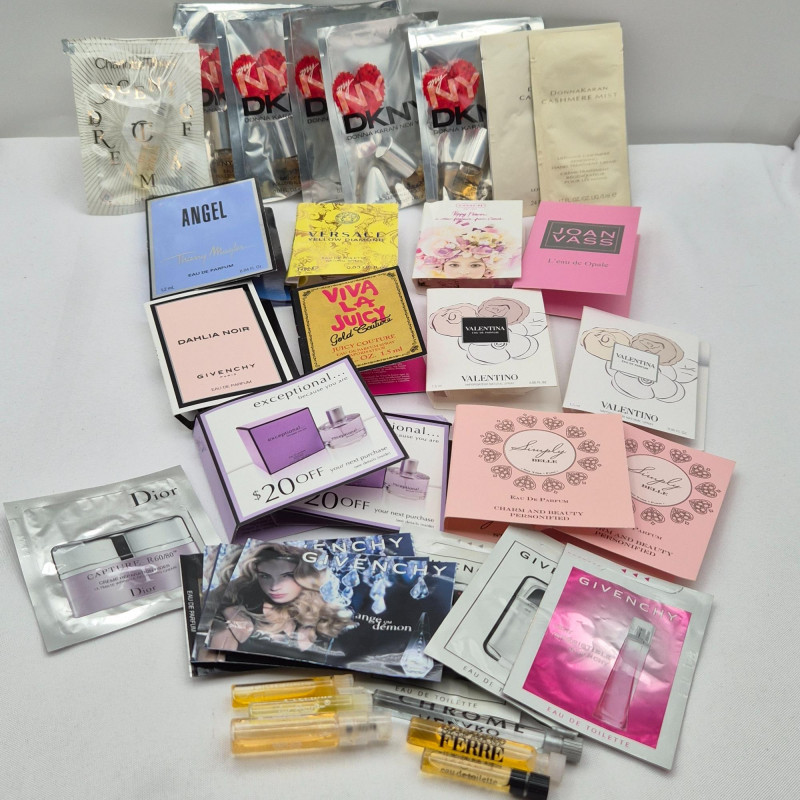 Indulge in a curated fragrance journey with over 20 pieces of designer perfume sample vials. Featuring coveted names like Coach, Valentino, Juicy Couture, Givenchy, DKNY, and more, this collection offers a sensory passport through the world of luxury scent. Each vial delivers a unique olfactory experience—from sparkling florals and warm ambers to playful fruits and sultry musks. Perfect for travel, gifting, or building your personal scent wardrobe, these samples range from 0.03 oz to 0.06 oz and are ideal for testing before investing in a full bottle.