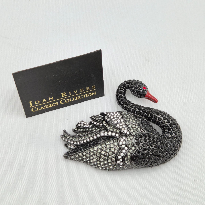 Lot # 16 - Elegant & Stunning Joan Rivers Ebony Metal & Crystals Swan Brooch