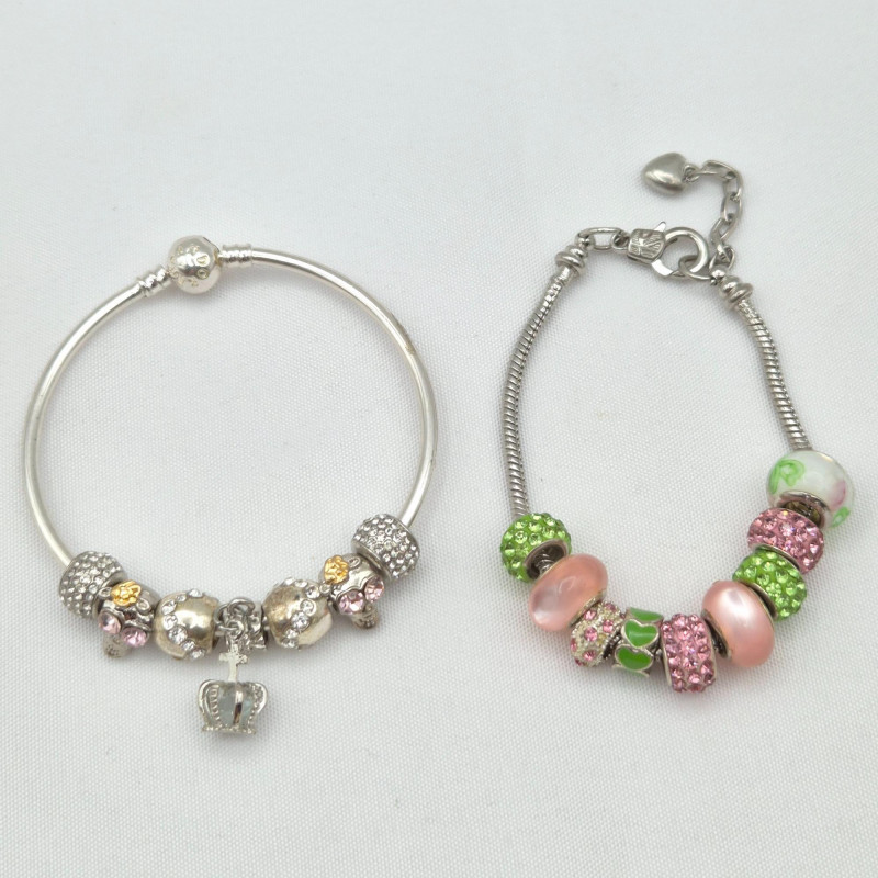 Striking pair of silver charm bracelets, each offering a unique blend of personality, sparkle, and collectible appeal.
