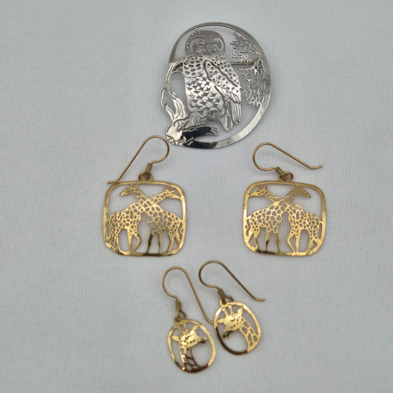Lot # 21 - Nature Lovers Wild Bryde Animal Cut-out Pierced Earrings & Pin
