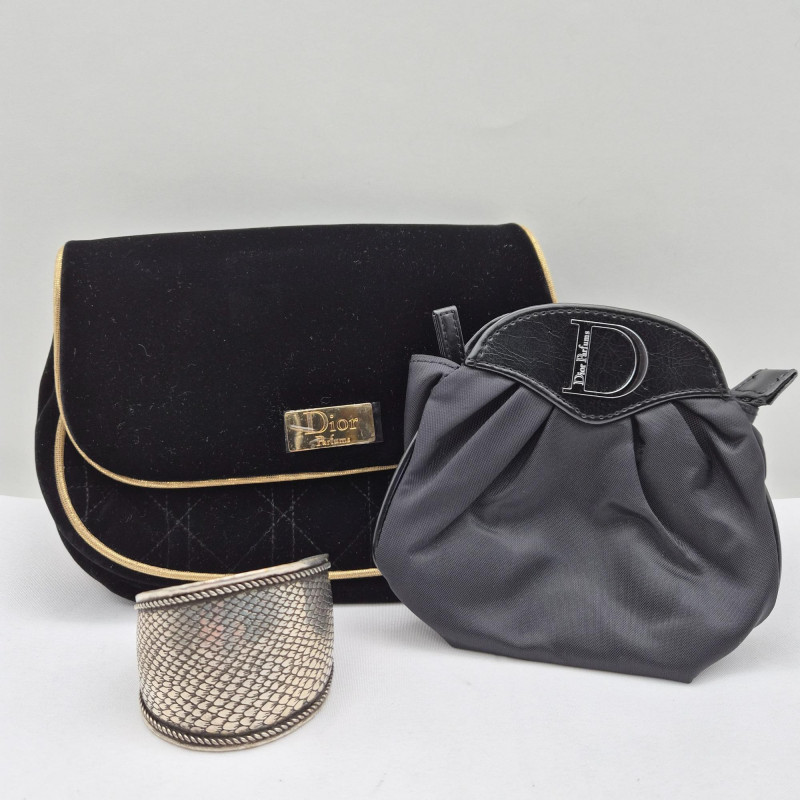 Lot # 43 - Two Dior Beauty Bags & Textured Silver Cuff Bracelet