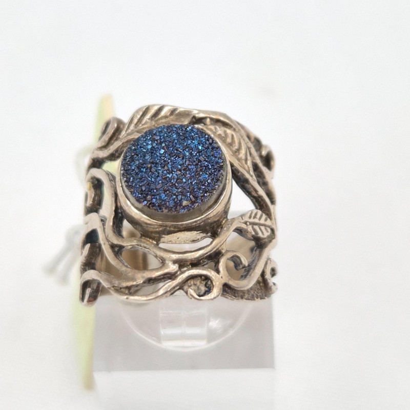 Lot # 47 - Wide Ornate Leaf Motif Band & Blue Titanium Druzy 925 Ring