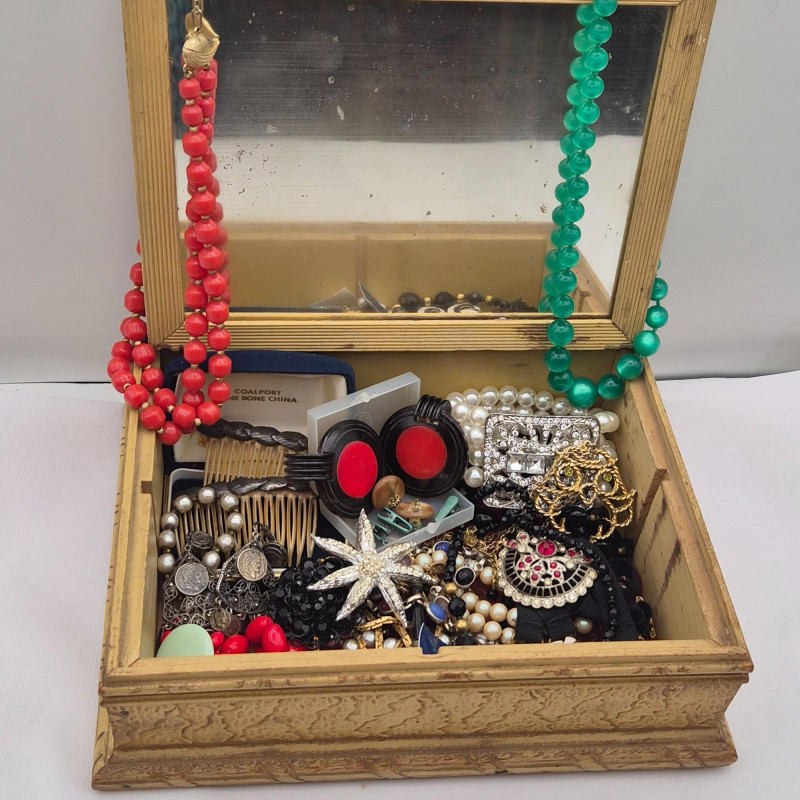 Lot # 55 - Eclectic Eras- Mixed Jewelry & Antique Wood Box