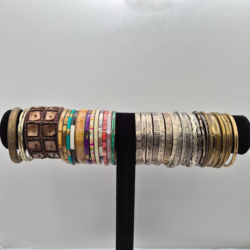 Roundup of vintage bangles, this lot offers a tactile journey through mid-century craftsmanship and global flair. This curated stash includes: