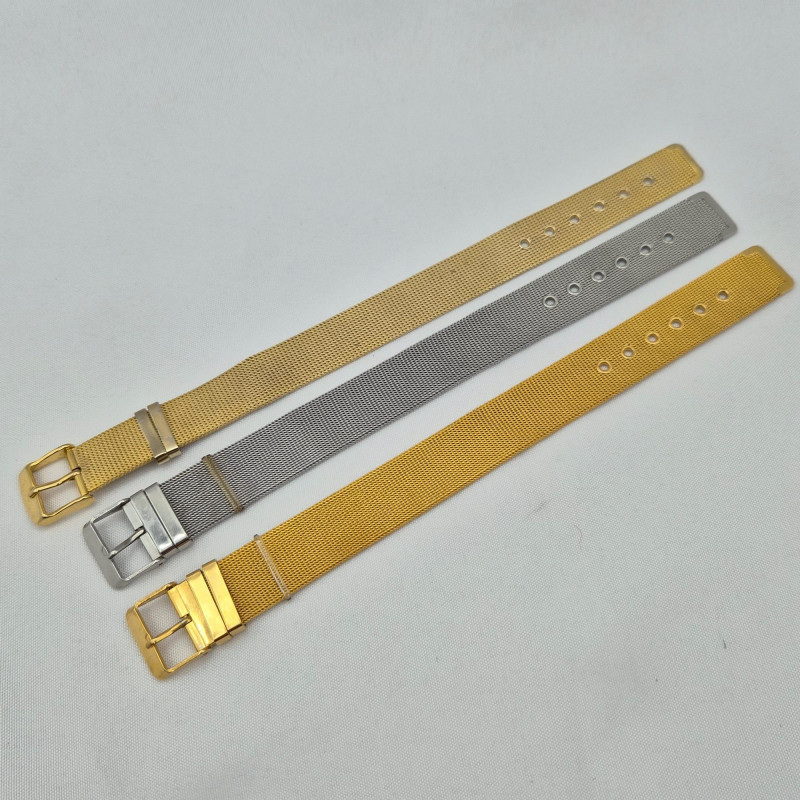 A modern mix of texture and tone, Lot 80 features three flexible mesh bracelets in a classic buckle style, perfect for layering or standalone wear. Crafted in gold tone and silver tone stainless steel, these pieces offer durability with a sleek, contemporary look.