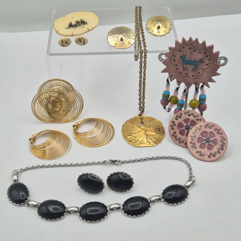 Assortment of fashion jewelry sets, each with its own story, texture, and aesthetic. From retro acrylic to coastal scrimshaw and handcrafted ceramic, this collection is ideal for stylists, collectors, and creative resellers. Includes: A treasure trove of wearable art and vintage charm, perfect for mixing, matching, or showcasing as individual statement pieces.