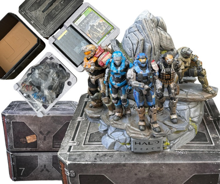 Honor the Spartans with this Halo Reach Legendary Edition for Xbox 360, a premium collector’s set released by Bungie and Microsoft Game Studios in 2010. This edition includes: The full Halo Reach game Exclusive Spartan statue created by McFarlane Toys Dr. Halsey’s personal journal and classified ONI documents Custom packaging with military-grade styling A must-have for Halo fans, Xbox collectors, and sci-fi gaming enthusiasts. Note: missing one limited edition CD