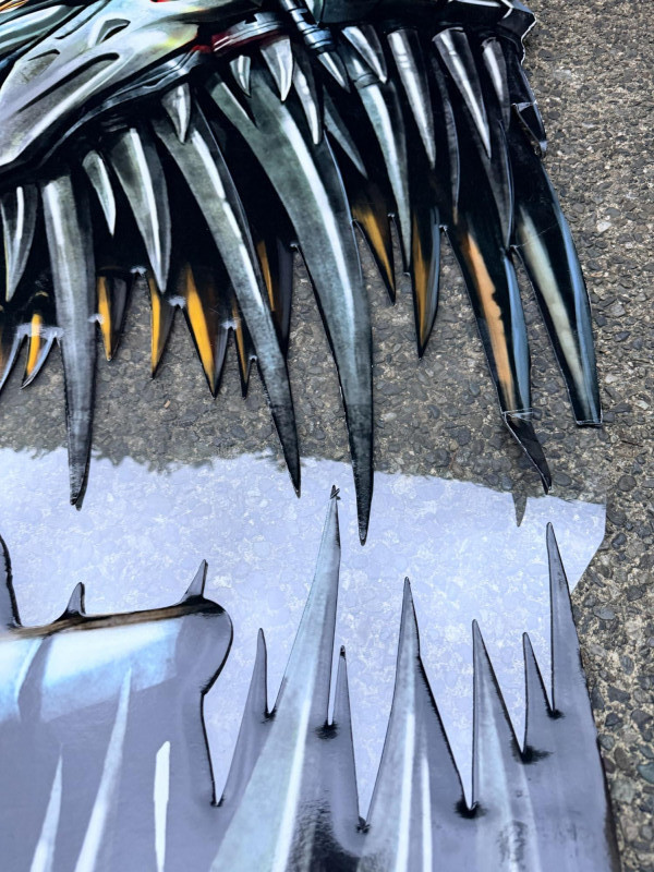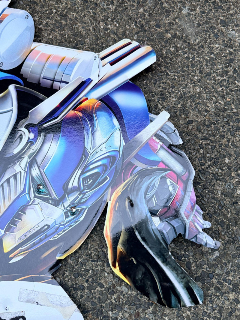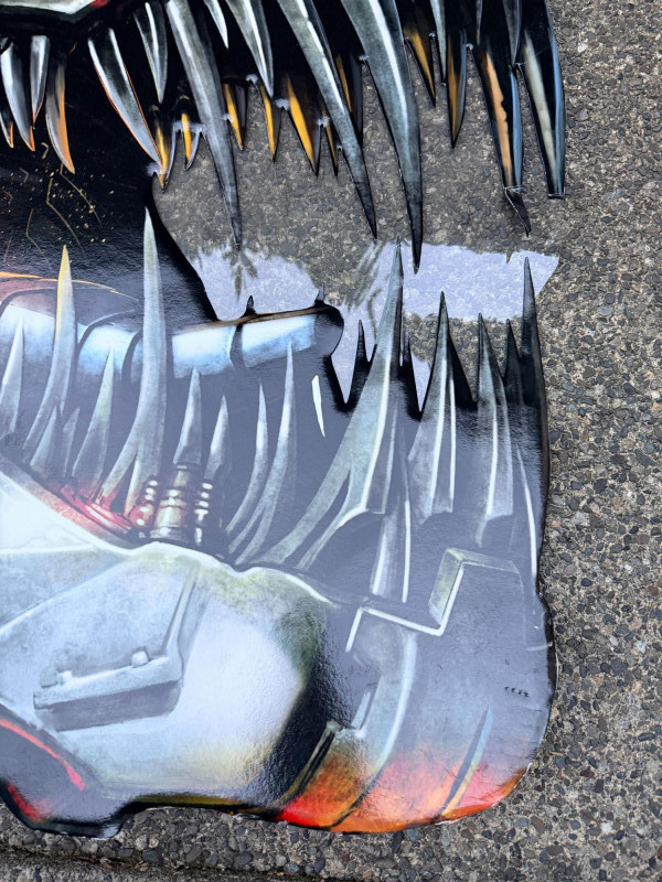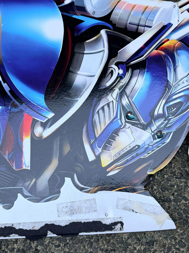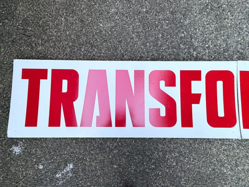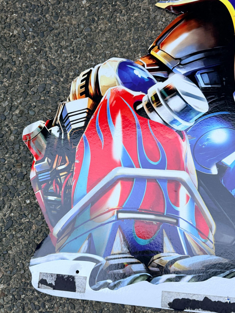 A dynamic duo from Transformers: Age of Extinction, this display set features Optimus Prime alongside a dinosaur-style Transformer in a bold, cinematic pose. Designed for visual impact, the figures evoke the high-stakes energy of the film and the enduring legacy of the franchise. Ideal for collectors, fans, or themed decor, this lot offers a striking tribute to the battle-ready heroes of Cybertron. Grimlock and Optimus Prime are two pieces but are also shown connected in pictures: Transformer sign in two pieces - 90 inches long (45" length each piece) and 17 inches tall