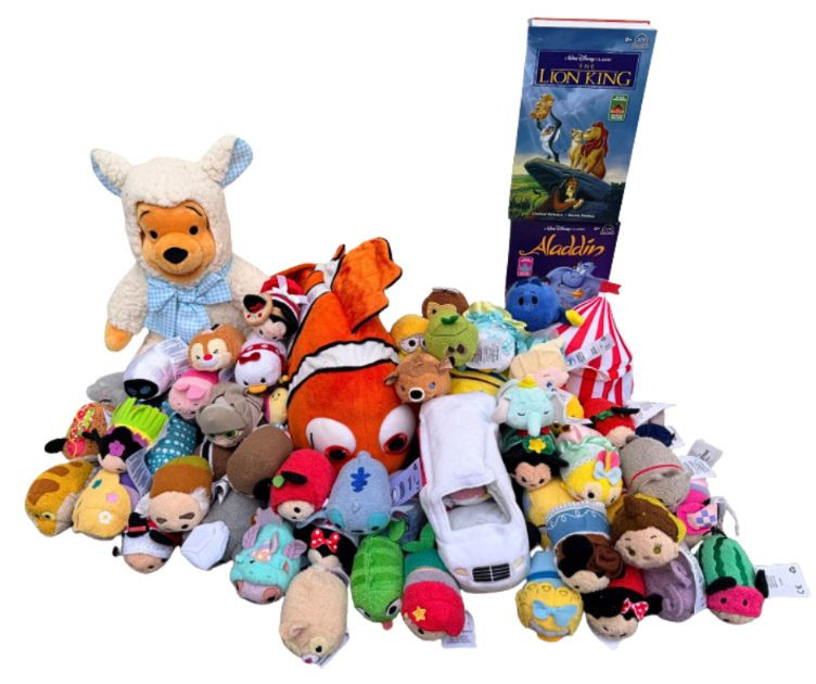 A heartwarming collection of Disney Store plush characters, this lot includes a variety of beloved figures—from classic icons to stackable Tsum Tsum favorites. Each piece captures the whimsy and wonder of Disney storytelling, with soft textures, expressive details, and collectible charm.