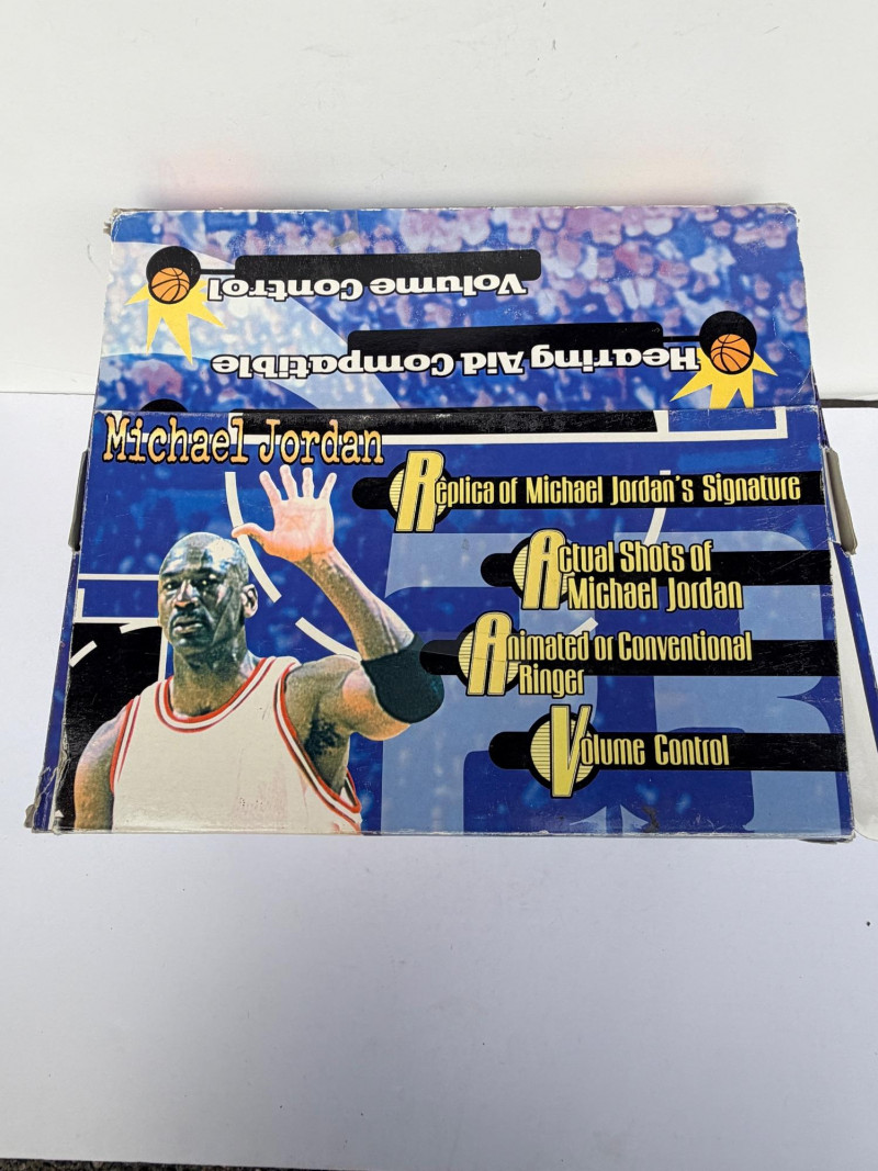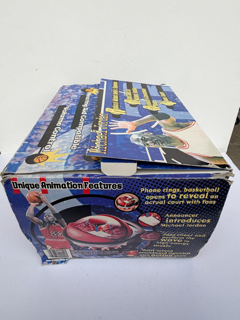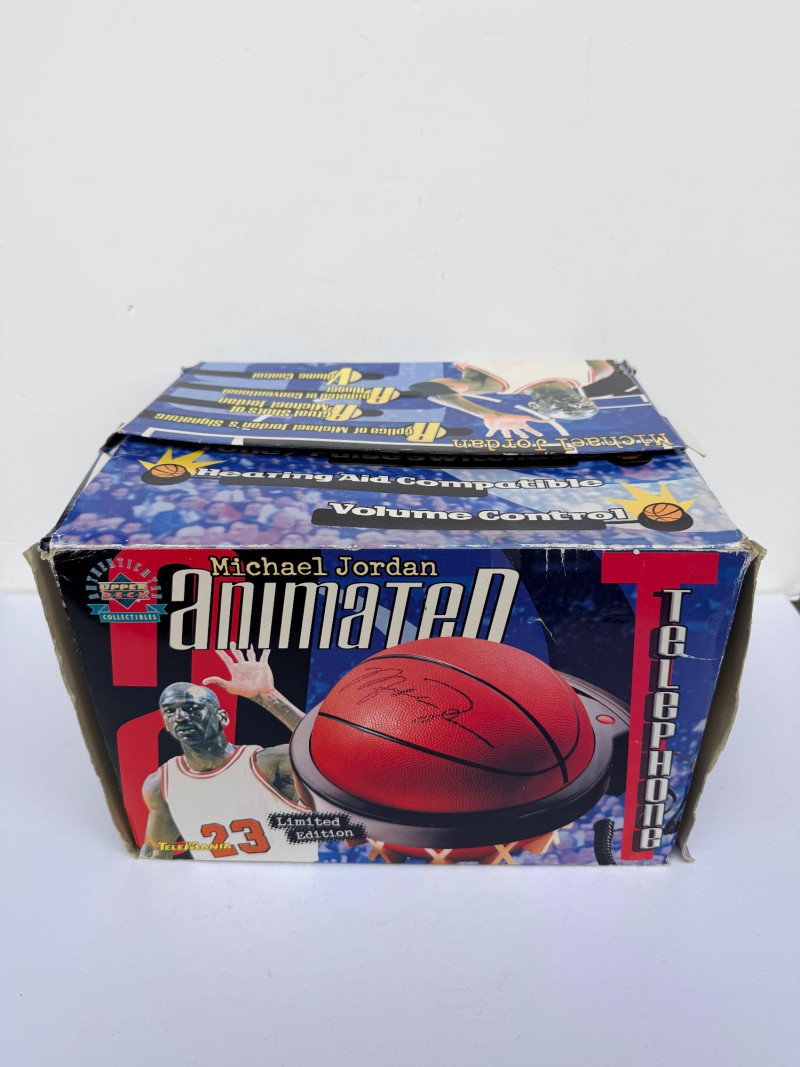A unique blend of sports memorabilia and 1990s novelty, this Upper Deck Michael Jordan phone captures the icon’s legacy in a bold, display-worthy format. Featuring Jordan in his signature dunk pose, the sculpted figure doubles as a functional landline phone—part tribute, part conversation starter. Ideal for collectors of basketball history, Upper Deck exclusives, or vintage tech, this piece evokes the era when Jordan reigned supreme and merchandising met imagination. Whether displayed in a game room or added to a sports archive, it’s a slam dunk of nostalgia.