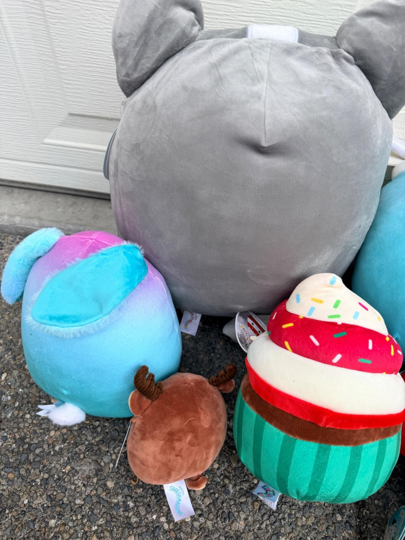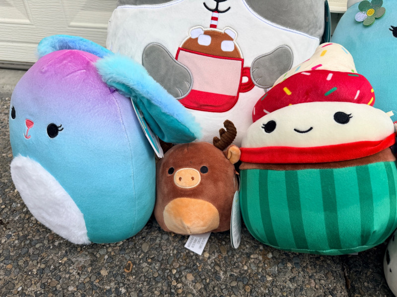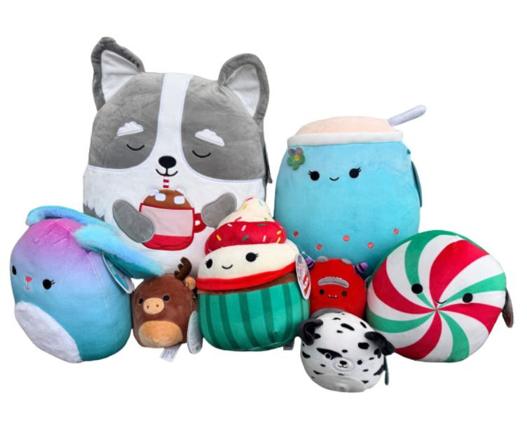 A cozy collection of Squishmallows plush toys featuring assorted characters, sizes, and styles. Known for their ultra-soft texture and expressive designs, Squishmallows have become beloved by collectors and comfort-seekers alike. This lot includes a variety of plushies—perfect for gifting, display, or expanding a personal collection. Whether you're drawn to their whimsical charm or tactile comfort, these plush companions offer joy in every squish.