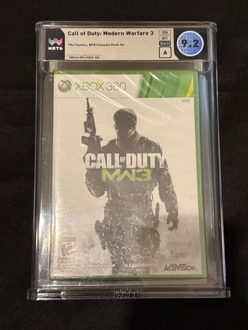 A WATA 9.2 A graded copy of Call of Duty: Modern Warfare 3 for Xbox 360—part of the blockbuster franchise that redefined cinematic first-person shooters. Released in 2011, MW3 delivers intense campaign missions, iconic multiplayer maps, and high-octane storytelling. Sealed and professionally graded, this copy is ideal for collectors of FPS titles, franchise completists, or fans of modern military gaming. A strong addition to any PlayStation-era archive, preserved with collector-grade integrity.
