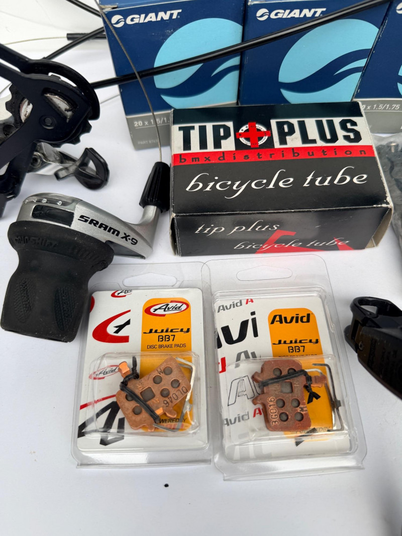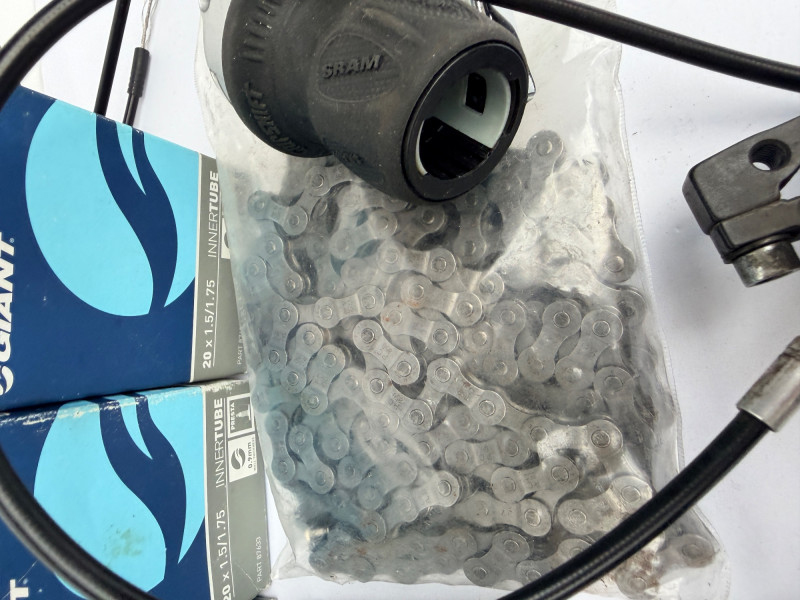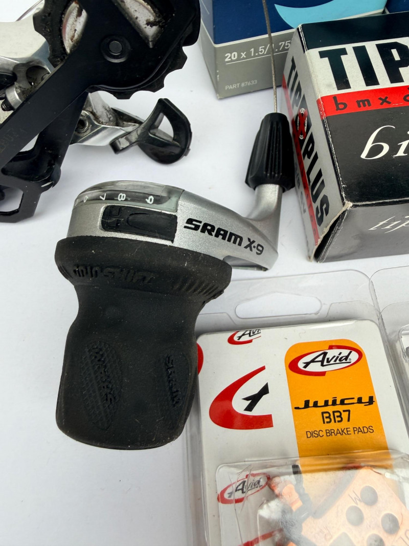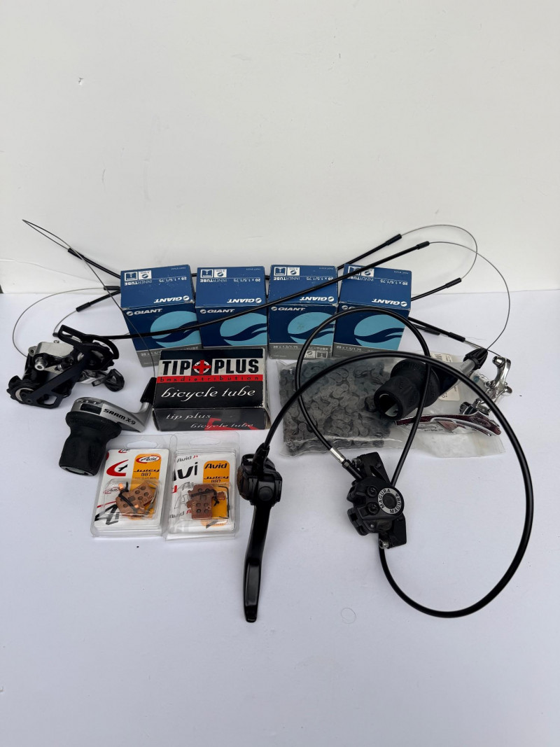 Mix of bicycle components and accessories - this lot includes performance-grade parts suitable for road, mountain, or hybrid builds. From precision-machined hardware to lightweight upgrades, each item reflects quality craftsmanship and rider-focused design. Ideal for cycling enthusiasts, mechanics, or custom bike builders, this lot offers versatility and value—whether you're upgrading a personal ride or sourcing parts for resale. Condition ranges from new-in-box to gently used, with standout pieces ready for installation.
