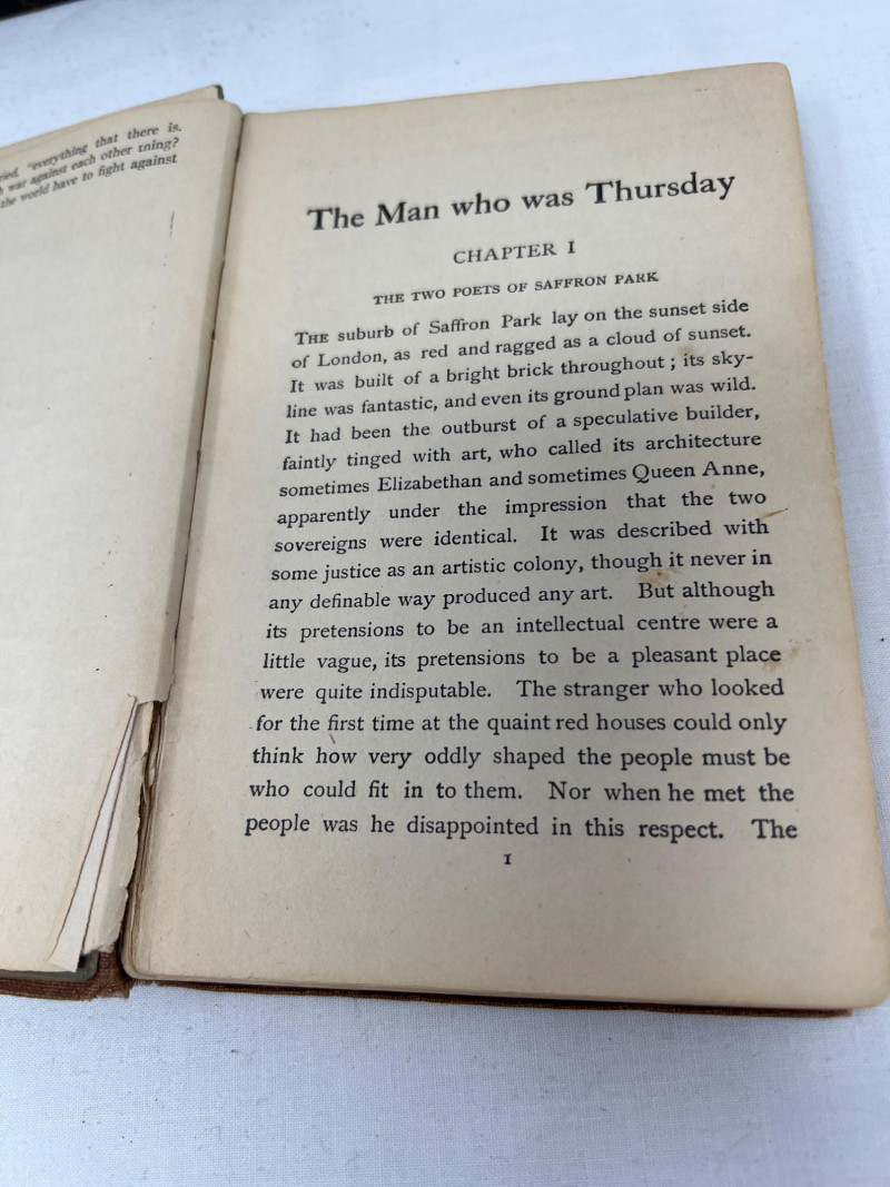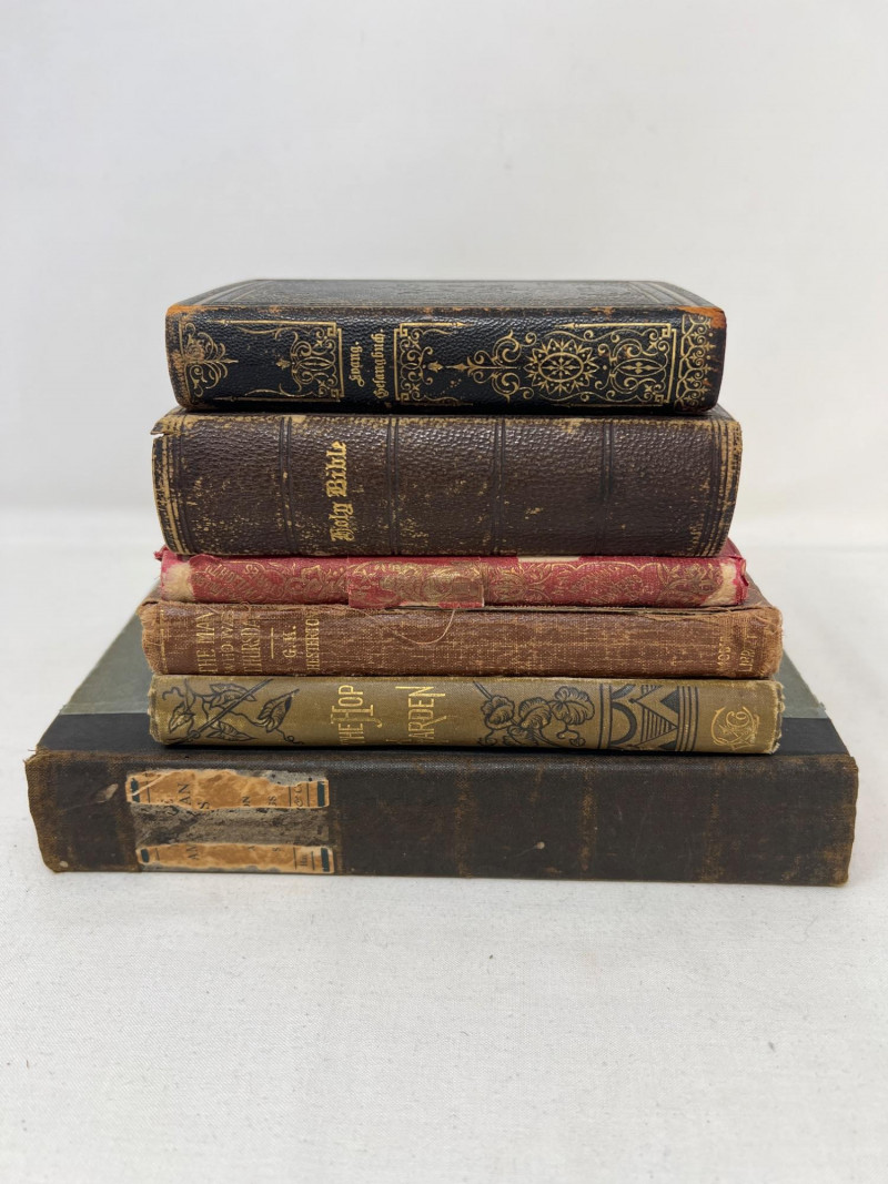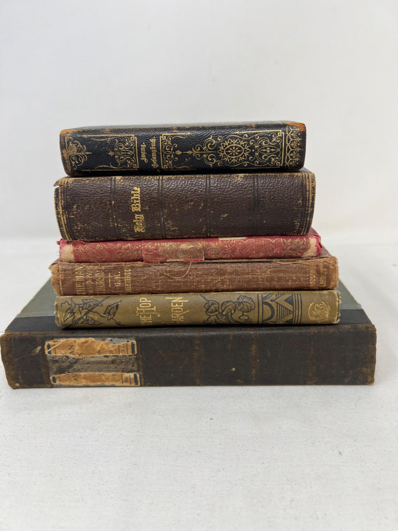 Six antique books spanning genres from theology to satire, drama, and children’s literature. This lot includes: The Holy Bible, Containing the Old and New Testaments Likely King James Version, mid-to-late 19th century Leather-bound, gilt edges, traditional layout Die Bibel oder die ganze Heilige Schrift des Alten und Neuen Testaments Printed in Gothic script, mid-1800s Leather binding with decorative embossing First published in 1908 A metaphysical thriller blending mystery, satire, and theology Chesterton’s allegorical tale of anarchists and undercover detectives Originally published in 1752 A georgic poem in Miltonic blank verse Instructional and autobiographical, with pastoral and political themes Published by Harcourt, Brace & Co., 1926 Includes What Price Glory, First Flight, and The Buccaneer Classic American drama with wartime and historical themes Published in 1857 by Lee & Shepard, Boston A collection of children’s tales with moral and travel themes Illustrated with engravings; hardcover with age-toned pages This lot offers a rich blend of spiritual, literary, and cultural history—ideal for collectors, educators, or those curating a legacy library. Condition varies; most bindings are intact with expected wear. Some bindings will need to be repaired.1. English Holy Bible