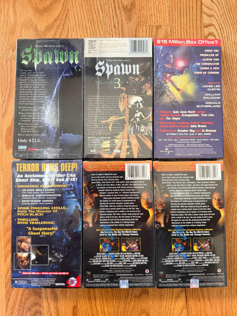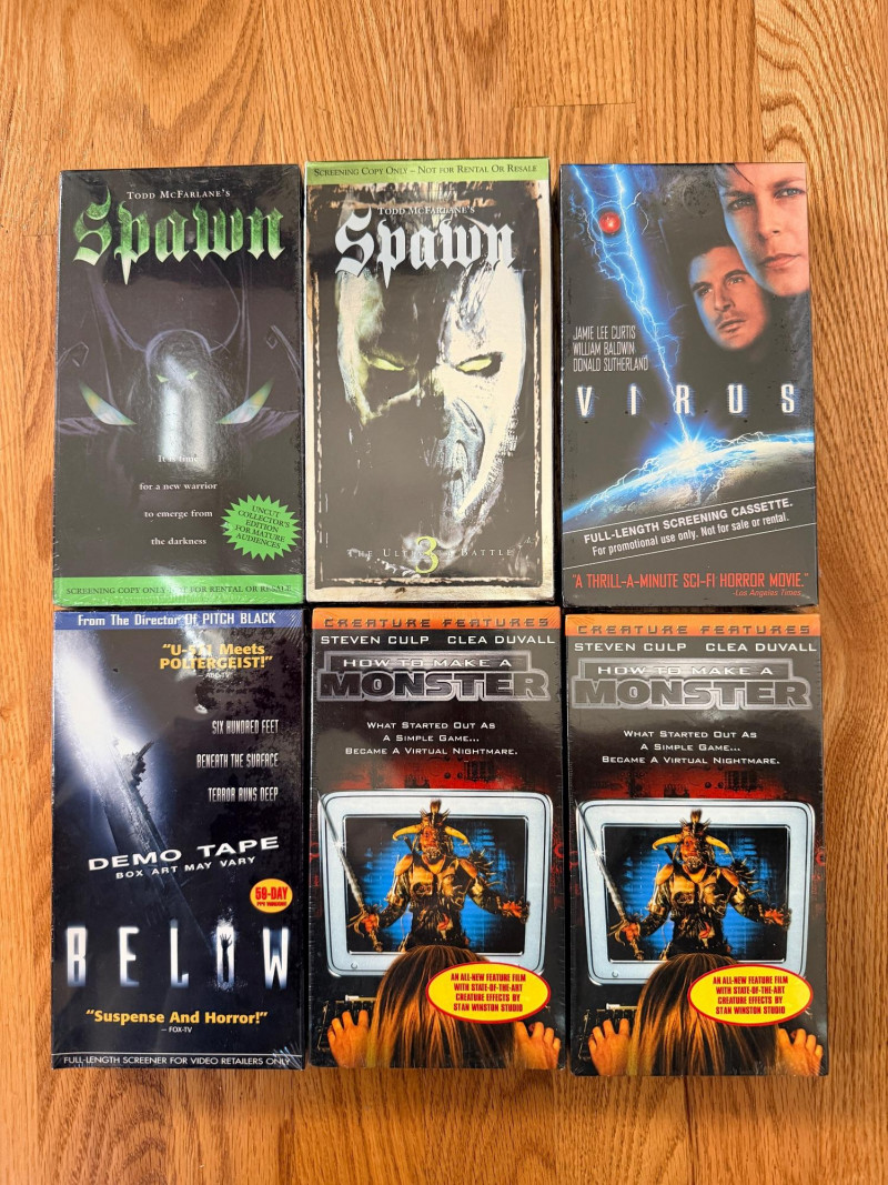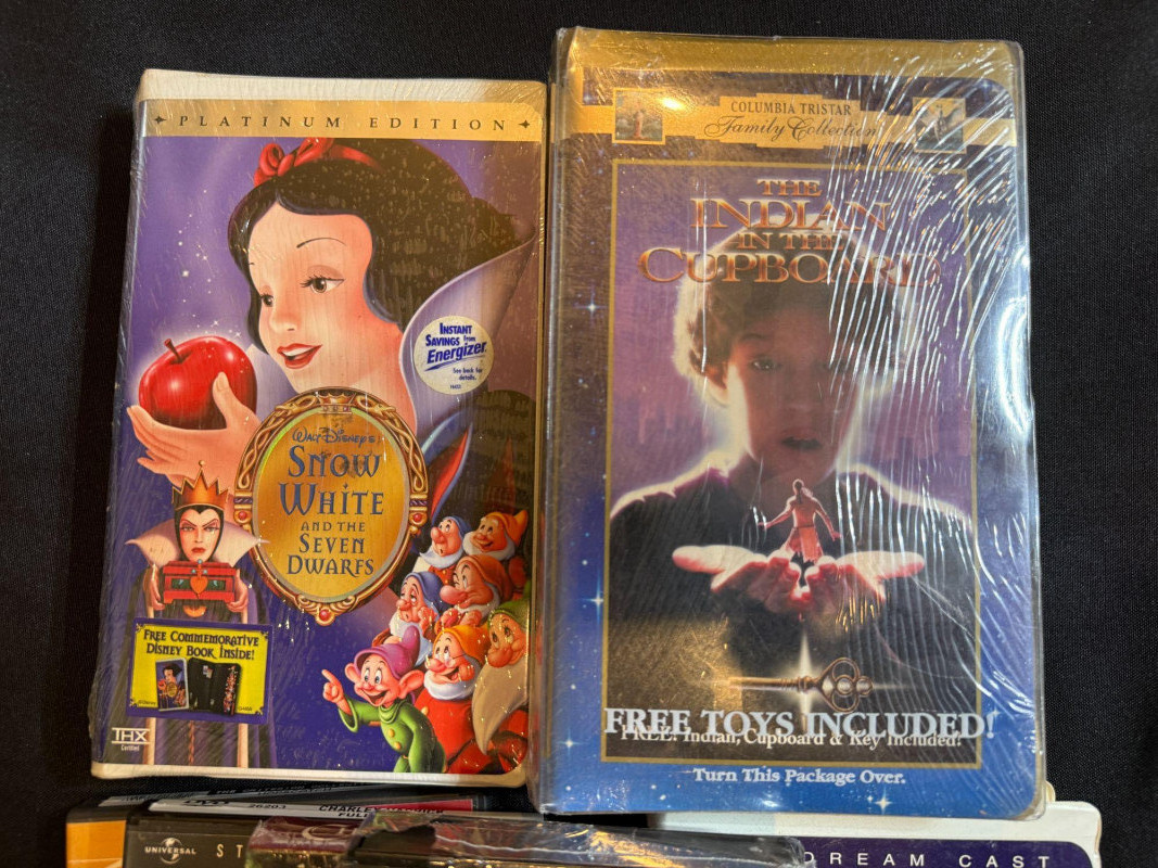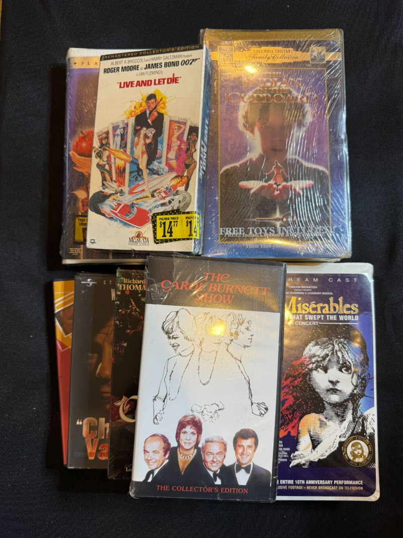 A diverse assortment of movies across DVD and VHS formats, spanning multiple genres including drama, comedy, action, and family favorites. This mixed-media lot includes both opened and factory-sealed titles, offering a nostalgic blend of cinematic formats for collectors and casual viewers alike. See pictures for titles. Factory Sealed VHS: Spawn, Spawn 3, Below, Monster (2 copies), Virus and more. DVDs - Carol Burnett Show, Live and Let Die, more.