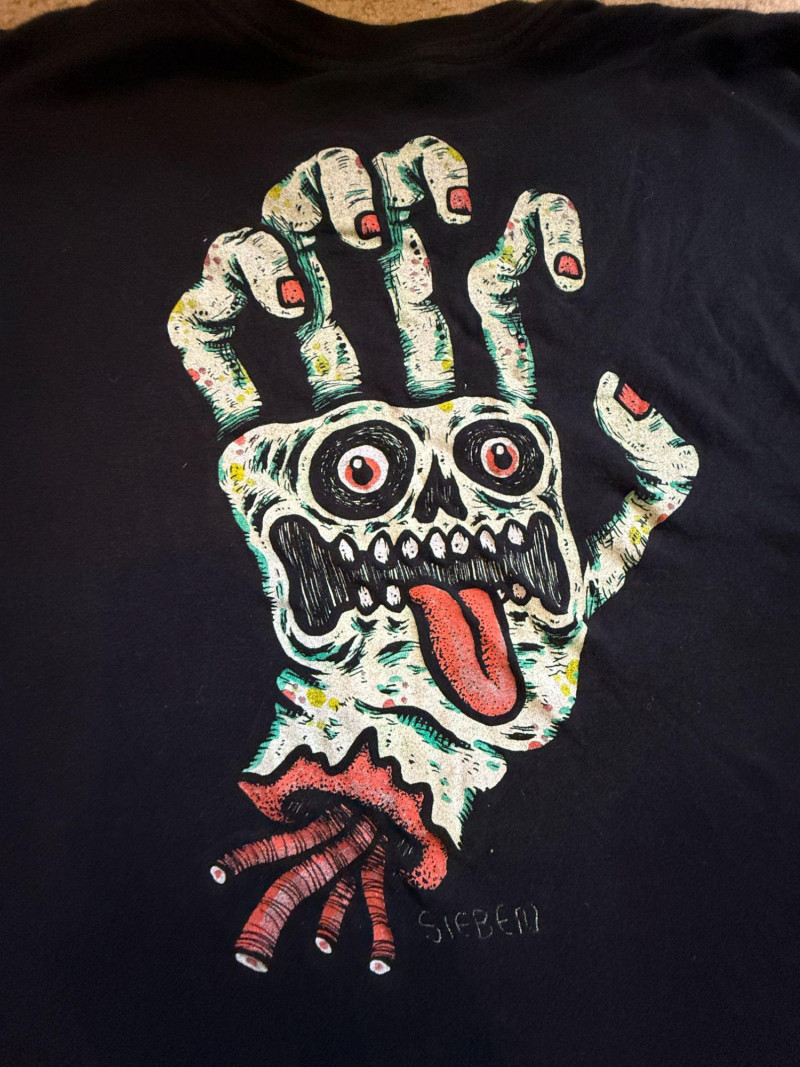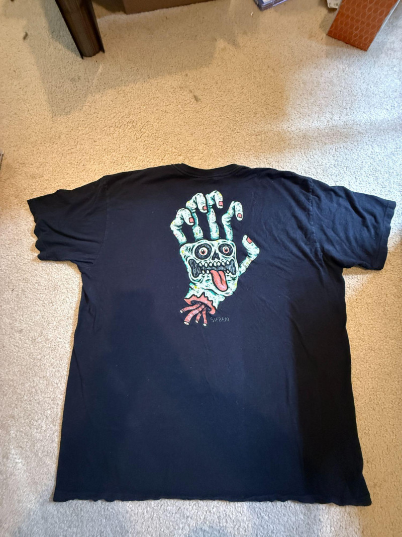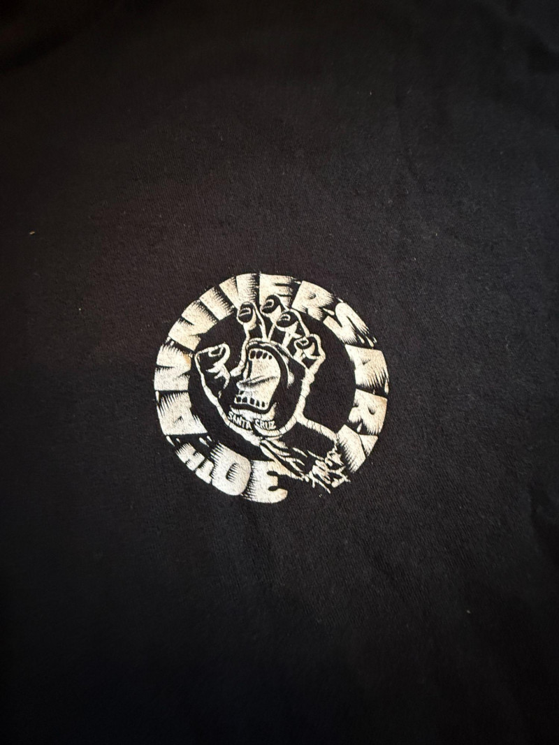 Celebrate three decades of skate culture and graphic design with this Santa Cruz Sieben 30th Anniversary T-shirt, size Large. Featuring bold artwork and legacy branding, this tee honors the iconic collaboration between Santa Cruz Skateboards and artist Jason Sieben. Size: Large Condition: Previously worn. Design: Anniversary edition print with Santa Cruz logo and Sieben artwork A must-have for collectors of skate memorabilia, streetwear enthusiasts, or fans of West Coast design history.