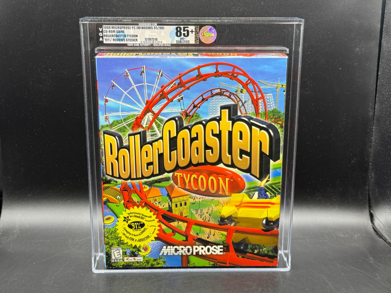 Qualified grade means the box has been opened but the contents inside are new and unused. A nostalgic gem for simulation fans: RollerCoaster Tycoon PC big box edition, professionally graded VGA 85+ Qualified. The “Qualified” grade indicates the box has been opened, but the contents inside remain unused and in pristine condition. Platform: PC CD-ROM Edition: Big box retail packaging Condition: VGA 85+ Qualified – opened box, unused contents Packaging: Includes original inserts and artwork A rare opportunity to own a piece of gaming legacy in display-worthy condition.