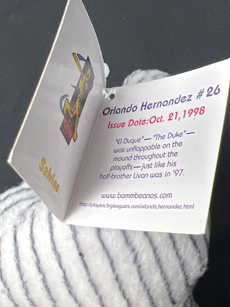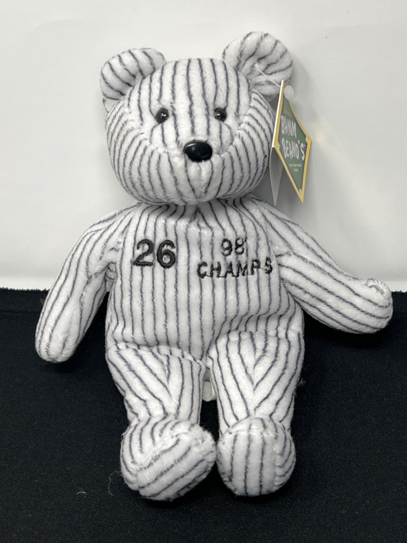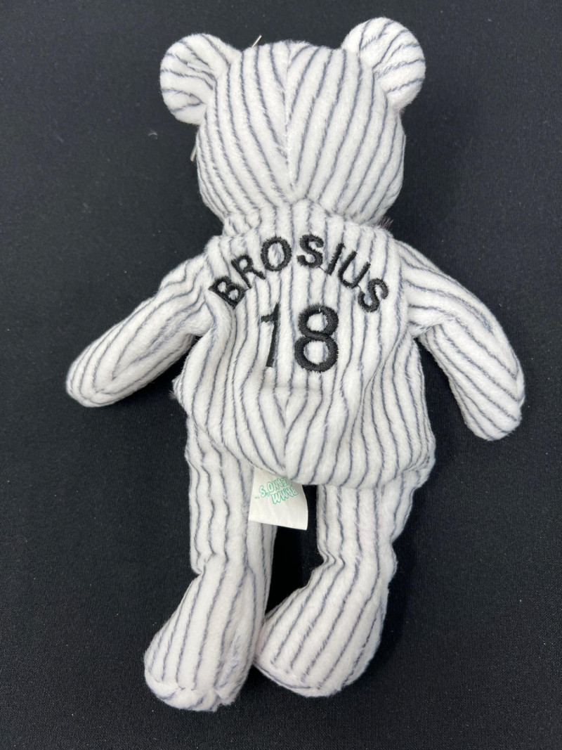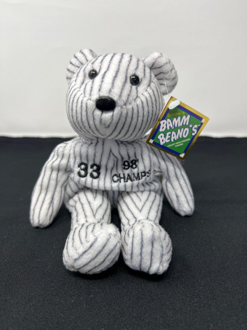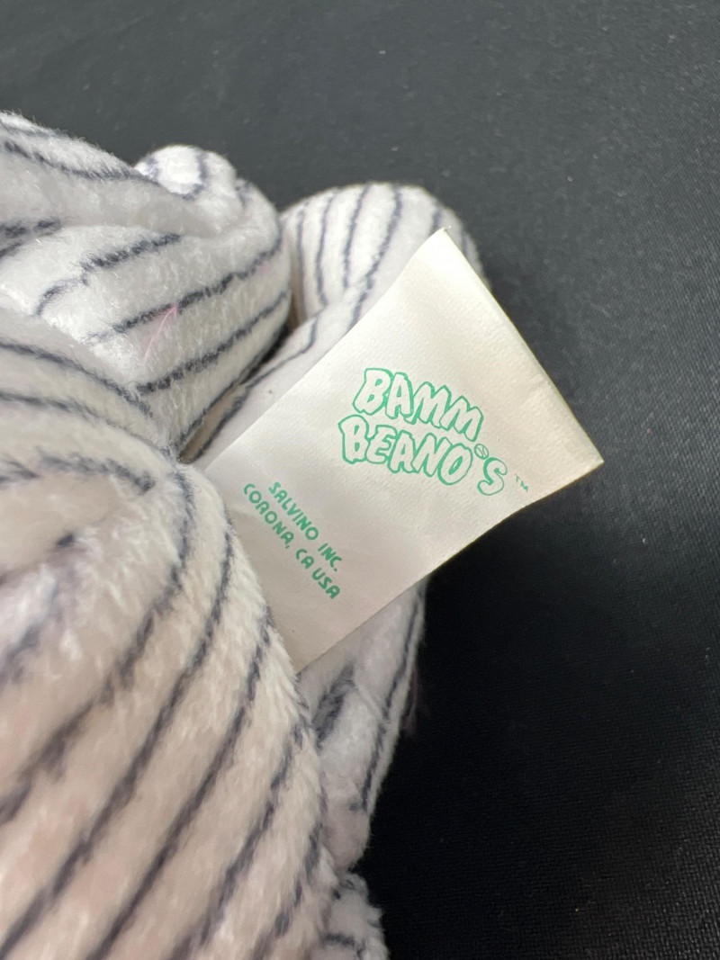 four Bamm Beano’s plush bears by Salvino, Inc., produced in Corona, California. These collectible bears were part of a limited run that blended sports fandom, Americana, and Beanie Baby-era nostalgia. Brand: Salvino’s Bamm Beano’s - Hernandez, Brosius, Strawberry and Wells Origin: Corona, California Quantity: 4 bears