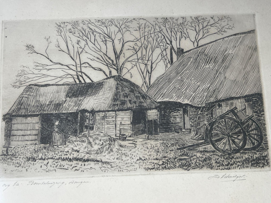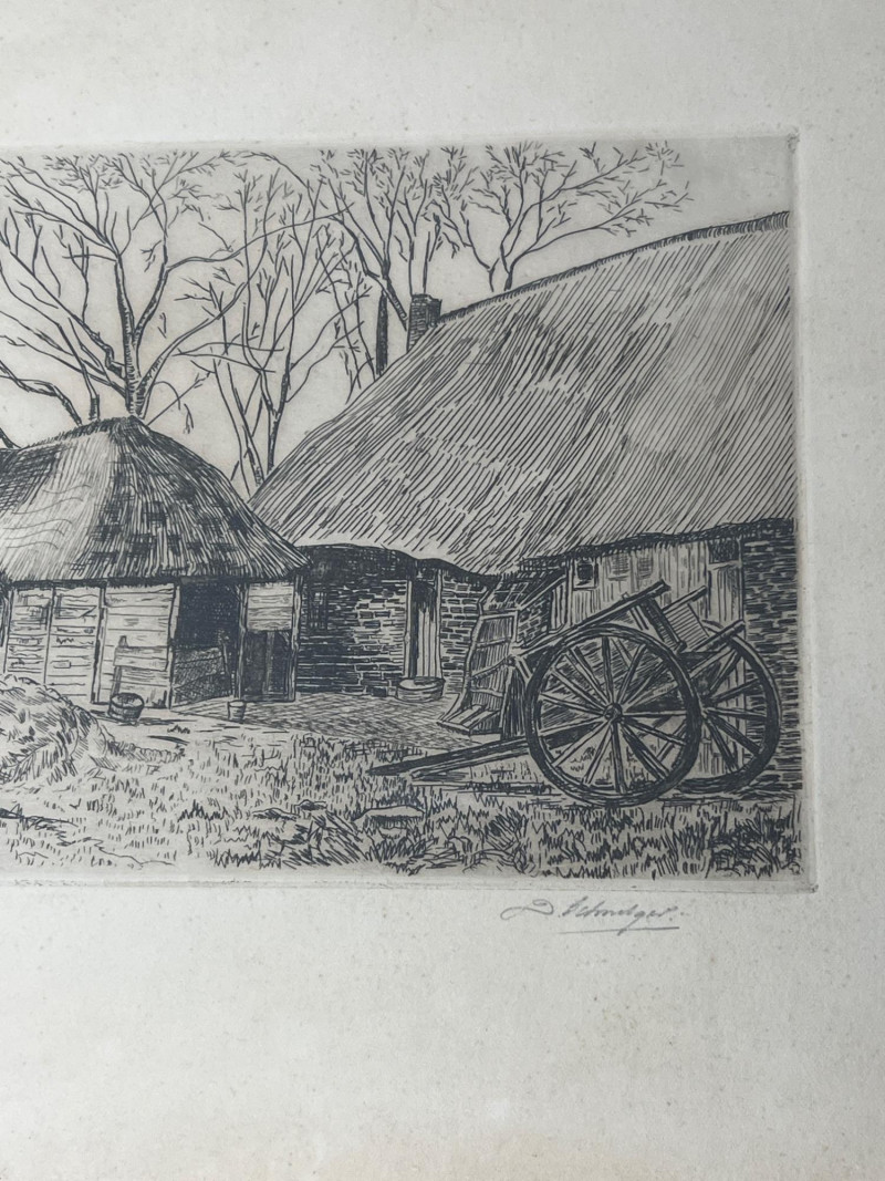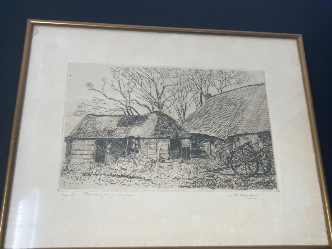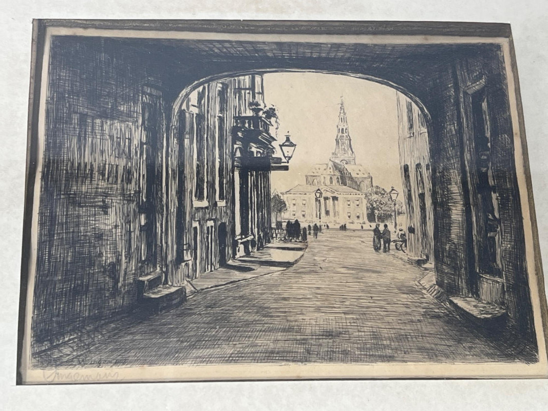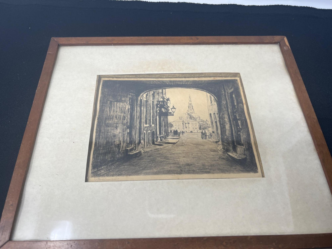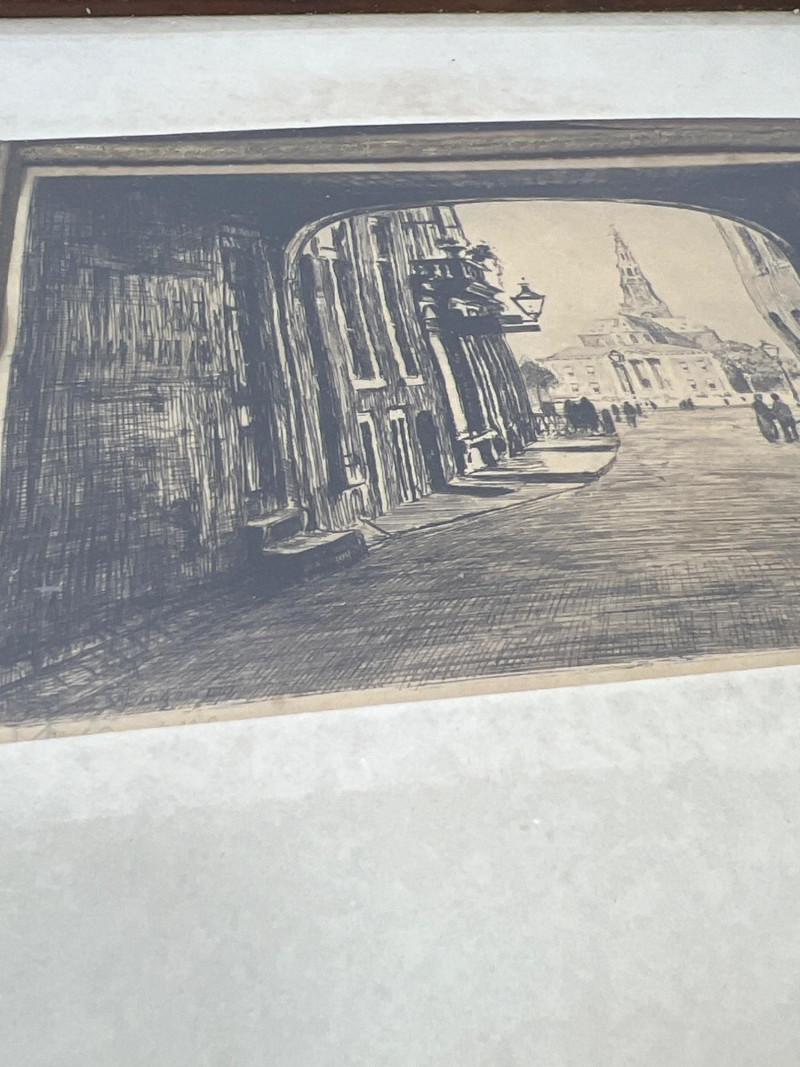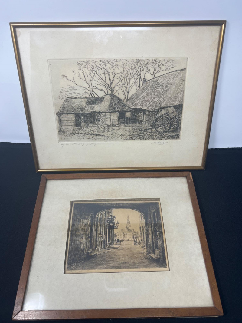 A pair of antique framed etchings dating to the 1800s, each showcasing delicate linework and classical composition. These pieces reflect the elegance and restraint of European printmaking traditions, ideal for collectors of historical art or those curating a refined interior. Dimensions: Etching 1: 13" length × 10" height (Amsterdam) Etching 2: 11" width × 9" height Medium: Etching on paper Framing: Period-style frames with protective glass Condition: Gently aged; frames show light wear consistent with age
