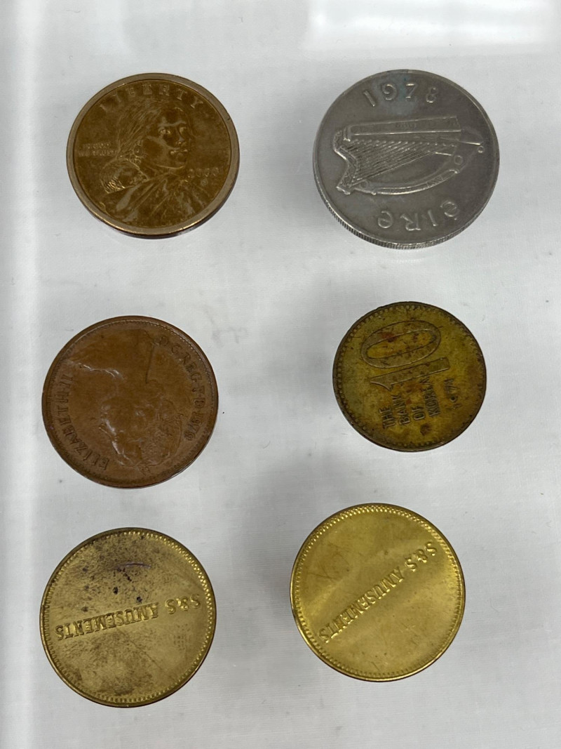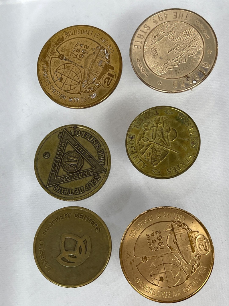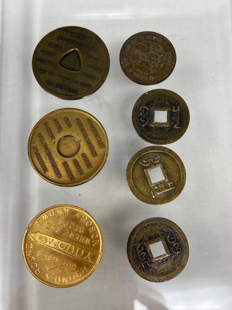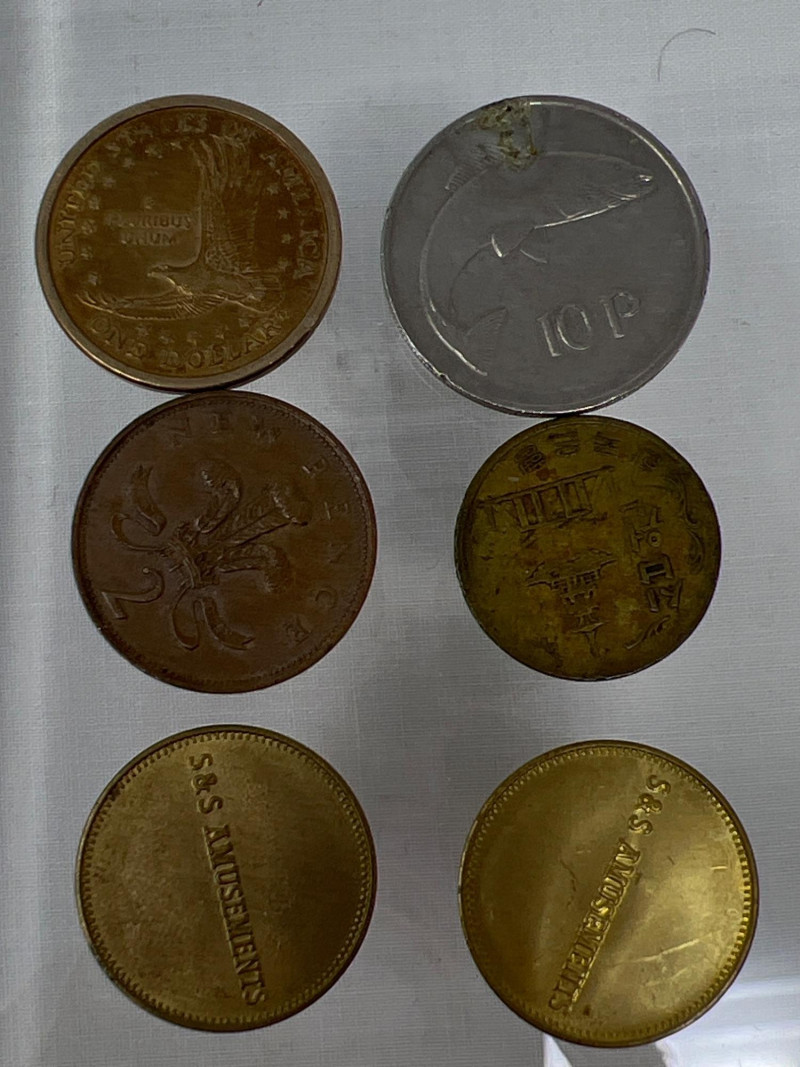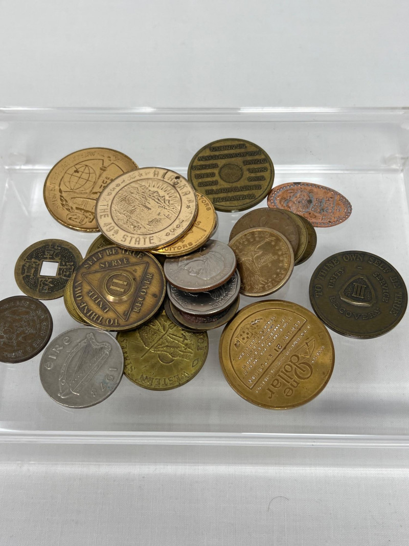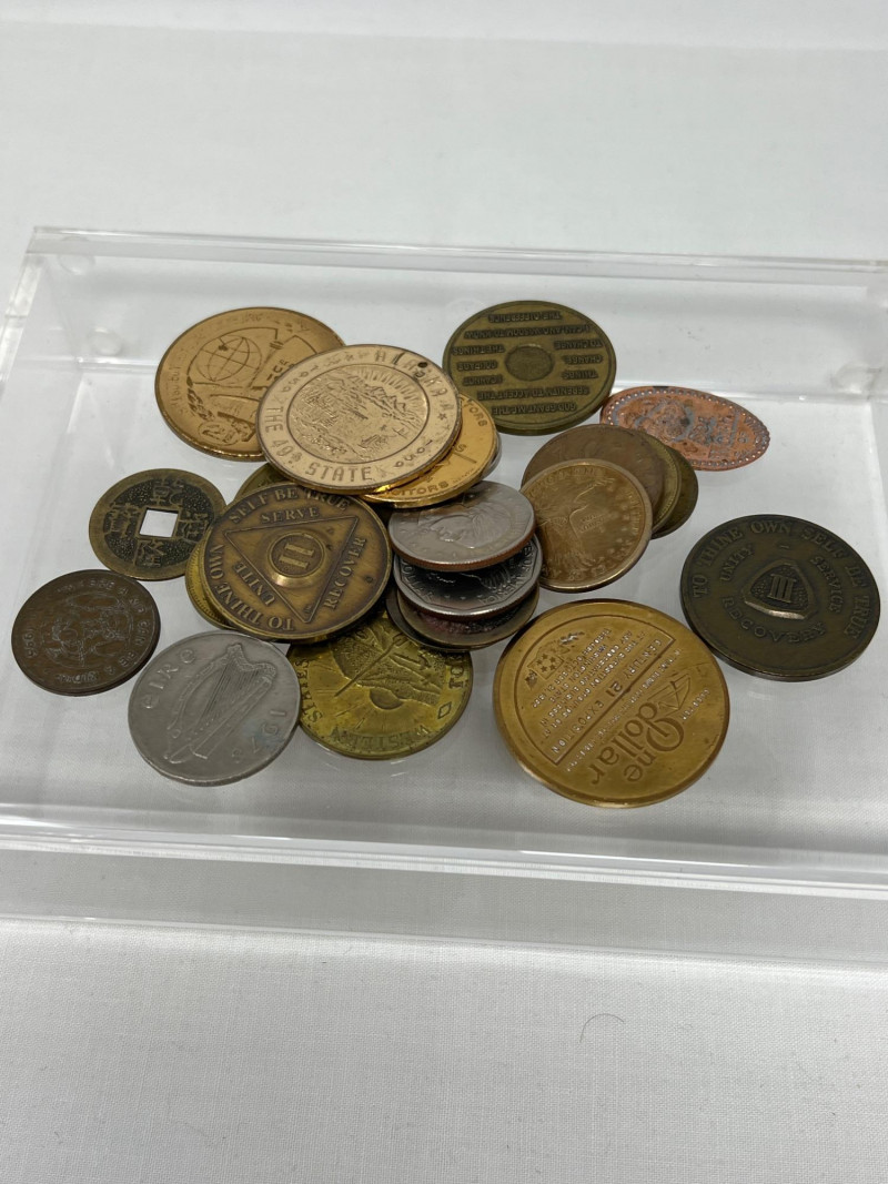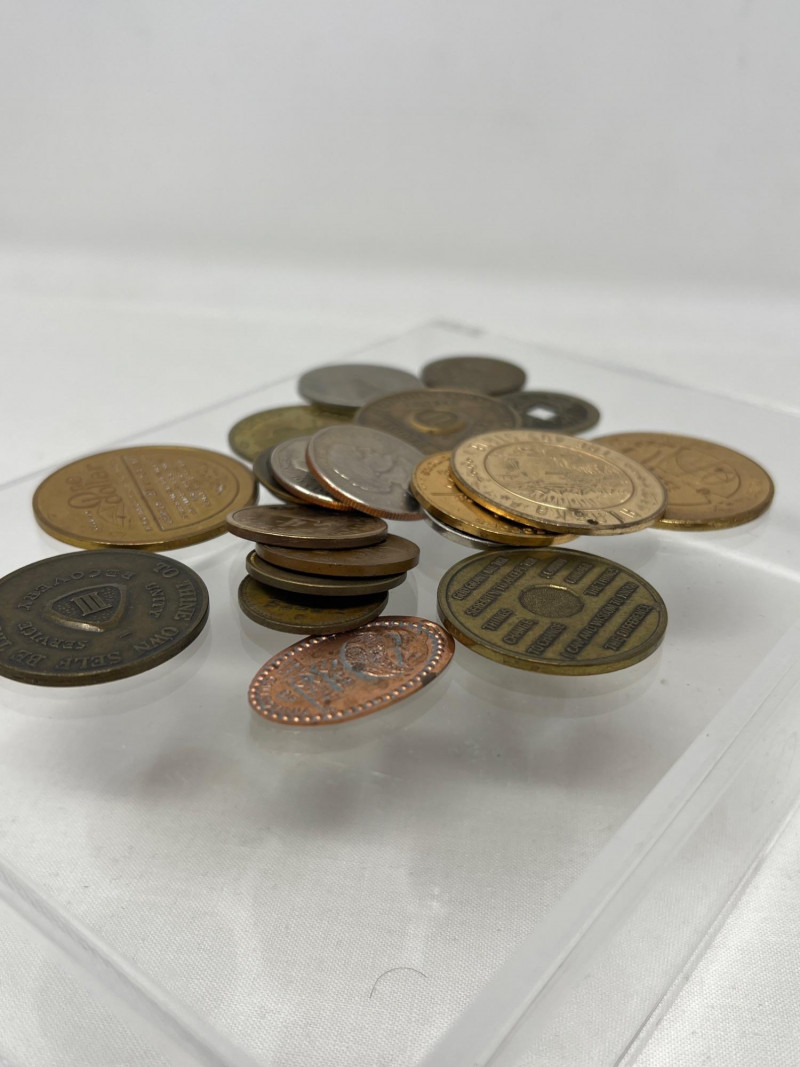 A spirited mix of American symbolism and international intrigue, this lot features a curated selection of tokens, foreign coins, and iconic U.S. issues including Sacagawea and Lady Liberty designs. Each piece carries its own quiet story—whether a commemorative token, a coin from abroad, or a tribute to liberty and exploration. Ideal for collectors who value diversity, mystery, and the tactile charm of minted metal. You'll find tokens from 1962 World's Fair, 1959 Alaska token, Sacagawea one dollar coin, Lady Liberty one dollar coins, and foreign coins.