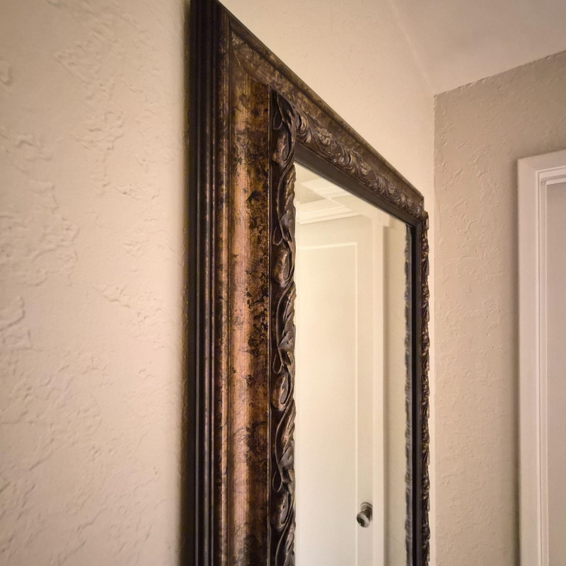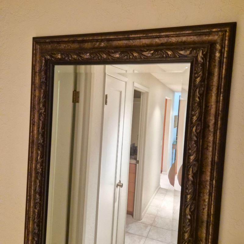 Elegant tall hall wall mirror features a bronzed finish wood frame and beveled glass for a refined, dimensional look. Measuring 26 inches wide by 67 inches tall, it’s ideal for entryways, dressing areas, or any space that calls for a touch of classic sophistication. The rich bronzed tone adds warmth and depth, while the beveled edge catches light beautifully. A timeless accent piece with both function and flair.